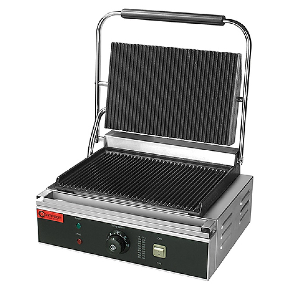 Прижимной гриль Campbon ZH-811E предназначен для жарки мяса, птицы, рыбы, овощей, а также для приготовления стейков, гамбургеров и горячих сэндвичей на предприятиях общественного питания и торговли. Рифленая поверхность создает аппетитную хрустящую корочку. Модель оснащена электронной панелью управления, таймером, индикатором нагрева и лотком для сбора жира. Плавающая верхняя жарочная поверхность оказывает равномерное давление на продукты. Корпус выполнен из нержавеющей стали, ручки - из термостойкого пластика, жарочная поверхность - из чугуна с антипригарным покрытием.