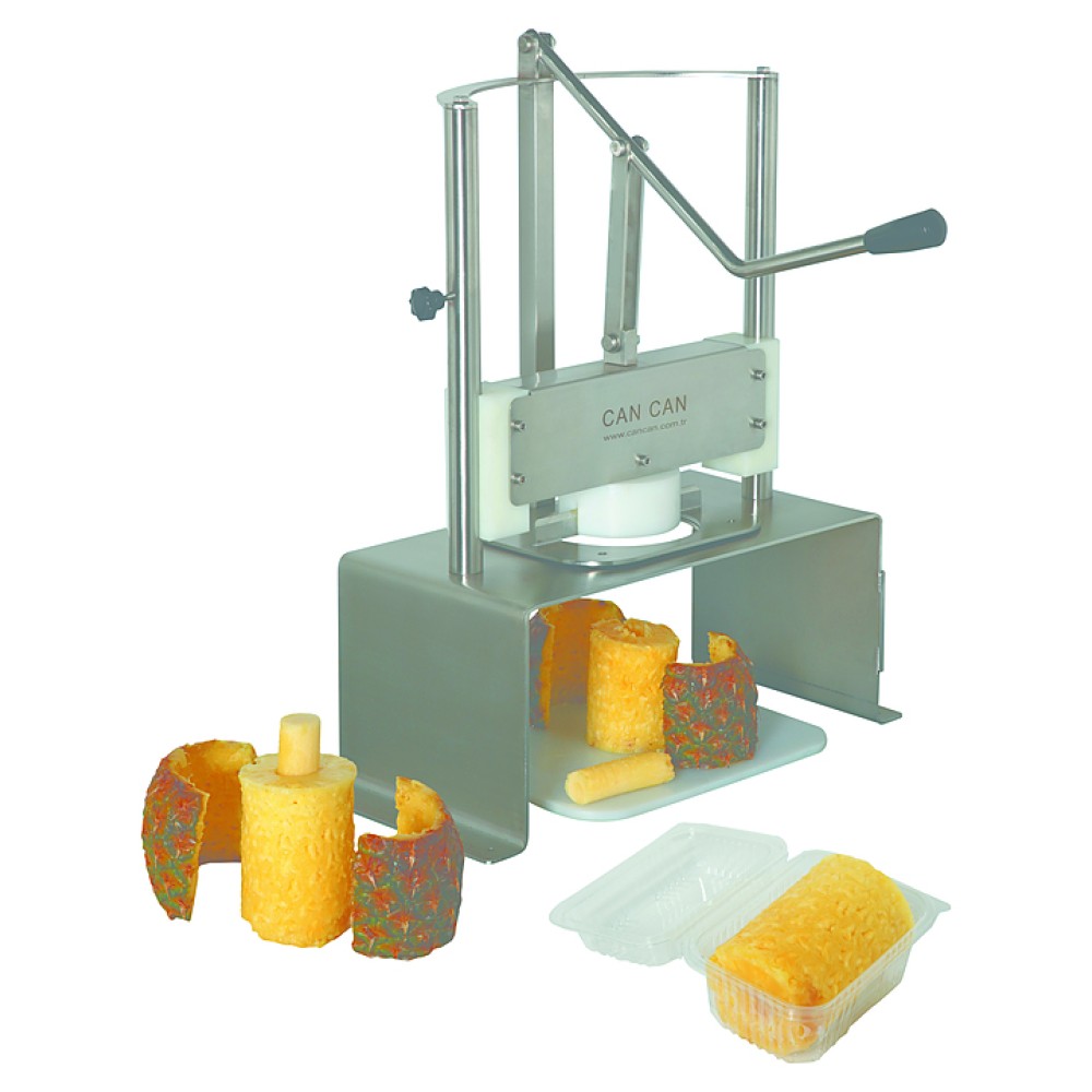 Машина CanCan CC.ASM01/8-9 предназначена для очистки ананасов от кожуры и сердцевины на предприятиях общественного питания и торговли. Корпус изготовлен из нержавеющей стали AISI 304 и полиамидного материала полностью соответствующего пищевым стандартам. Система безопасности предотвращает падение надавливающего механизма.