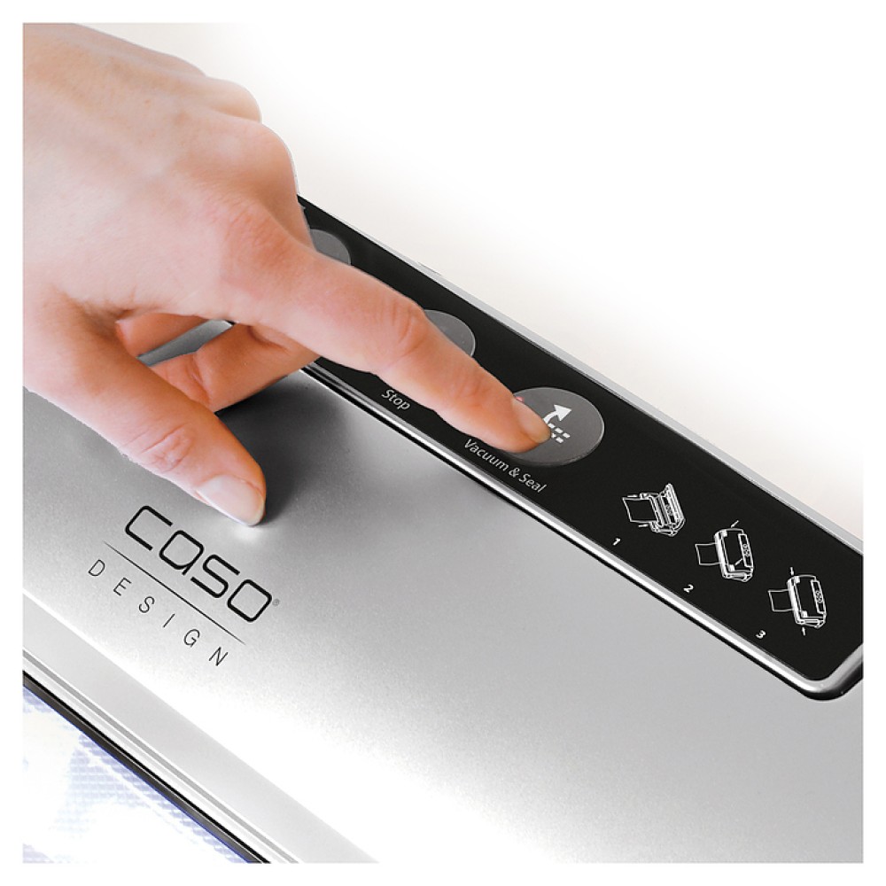 Бескамерный вакуумный упаковщик CASO VC 15 используется на малых предприятиях промышленности, общественного питания и торговли, а также в домашних условиях для упаковки гастрономических продуктов, фотографий, документов, медикаментов, косметики и других предметов в герметичную тару для сохранения свежести, предотвращения размножения микроорганизмов и смешивания запахов. Модель оснащена вакуумным насосом, запаечным слотом с нихромовой нитью в качестве нагревательного элемента, откидной верхней створкой, кабелем питания с вилкой и панелью управления с мембранной клавиатурой. Корпус выполнен из ударопрочного черного пластика, облицовка крышки из нержавеющей стали, панель управления с мягкой черной поверхностью Soft Touch.