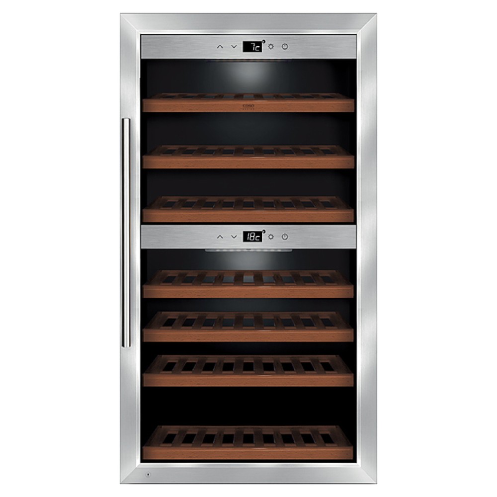Винный шкаф CASO WineComfort 660 Smart предназначен для охлаждения и длительного хранения бутилированного и разливного вина в частных домах, квартирах, отелях и офисах. Модель оснащена 2 температурными зонами для красного и белого вина с активным вентилятором в каждой, сенсорной панелью управления с возможностью удаленного управления через приложение Wi-Fi Smart Control и 7 деревянными съемными полками на подшипниках. Дверная рама и ручка выполнены из нержавеющей стали, дверца - из трехслойного изолирующего стекла с УФ-фильтром.