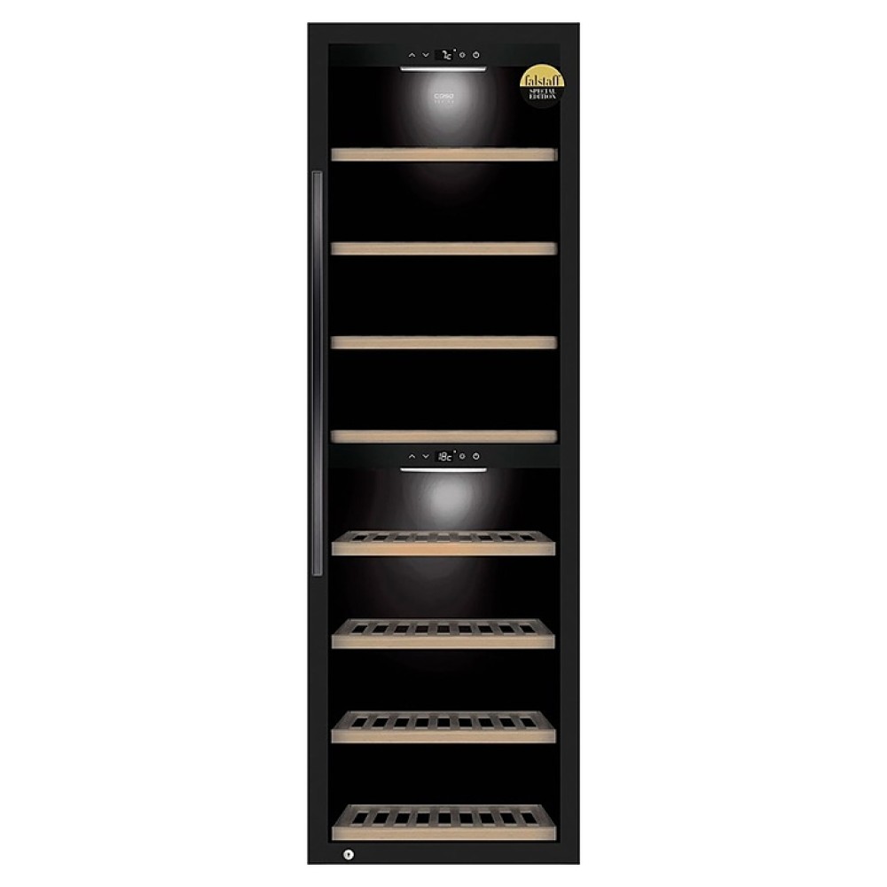 Винный шкаф CASO WineExclusive 180 Smart предназначен для охлаждения, хранения при оптимальных условиях и демонстрации бутилированного вина различных сортов в барах, ресторанах, специализированных магазинах, подсобных складских помещениях, а также домашних условиях. Модель оснащена холодильной камерой с 8 выдвижными полками на шарикоподшипниках, запираемой на ключ распашной дверью с вертикальной рукояткой и обзорным окном. Корпус выполнен из высококачественной стали с антикоррозийным покрытием черного цвета, рукоятка – из металла, полки – из массива древесины.