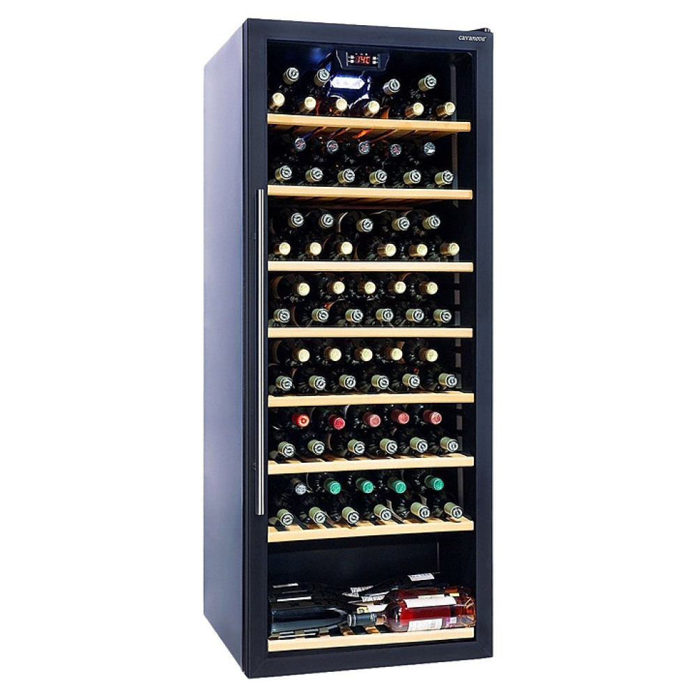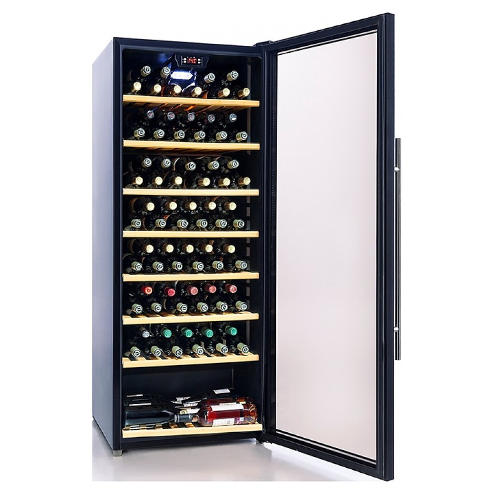 Винный шкаф Cavanova CV100T создает оптимальные условия для сохранения всех вкусовых свойств разливного вина в барах, ресторанах, специализированных магазинах, частных домах или квартирах. Модель оснащена светодиодной подсветкой мягкого синего цвета. Корпус выполнен из окрашенного металла, дверь - из рамки черного цвета и двойного тонированного стеклопакета с УФ-фильтром, полки - из дерева.