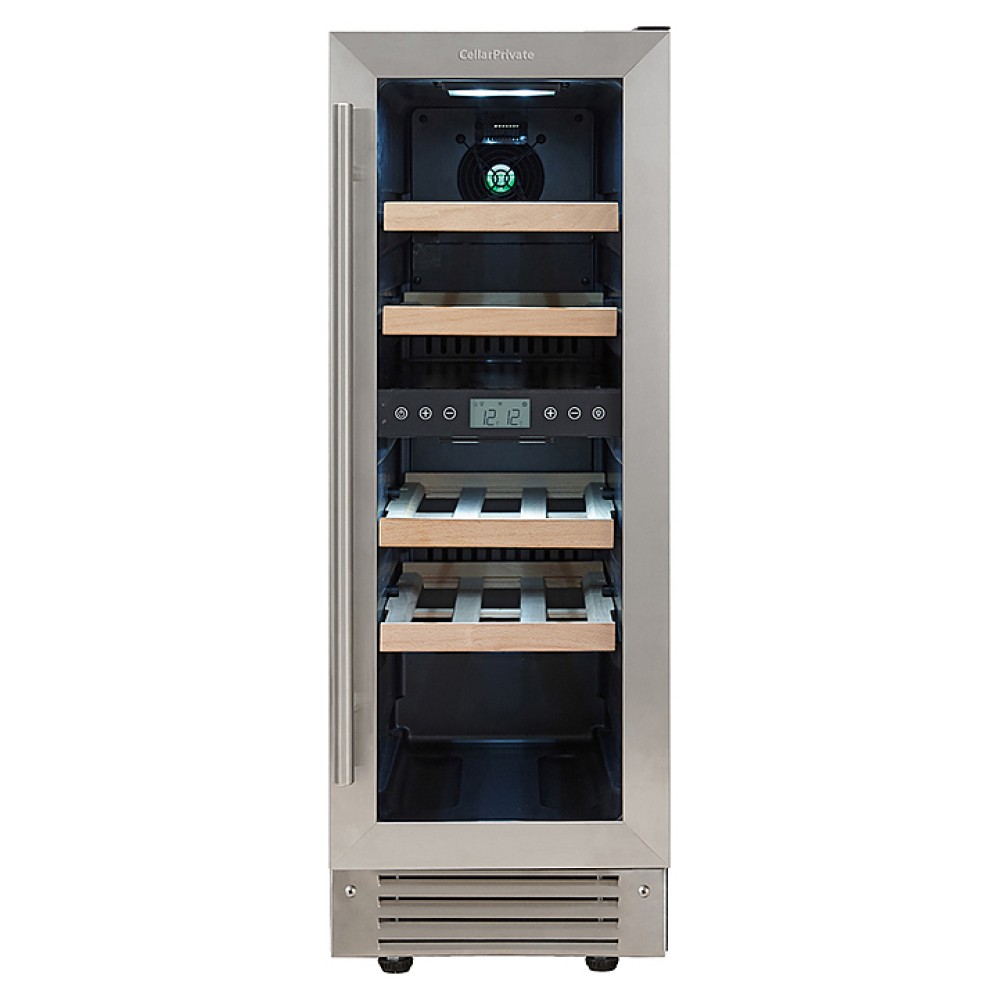Винный шкаф Cellar Private CP017-2T создает оптимальные условия для сохранения всех вкусовых свойств разливного вина в барах, ресторанах, специализированных магазинах, частных домах или квартирах. Модель оснащена светодиодной подсветкой мягкого синего цвета. Корпус выполнен из окрашенного металла, дверь - из металлической рамки и двойного тонированного стеклопакета с УФ-фильтром, полки - из дерева.