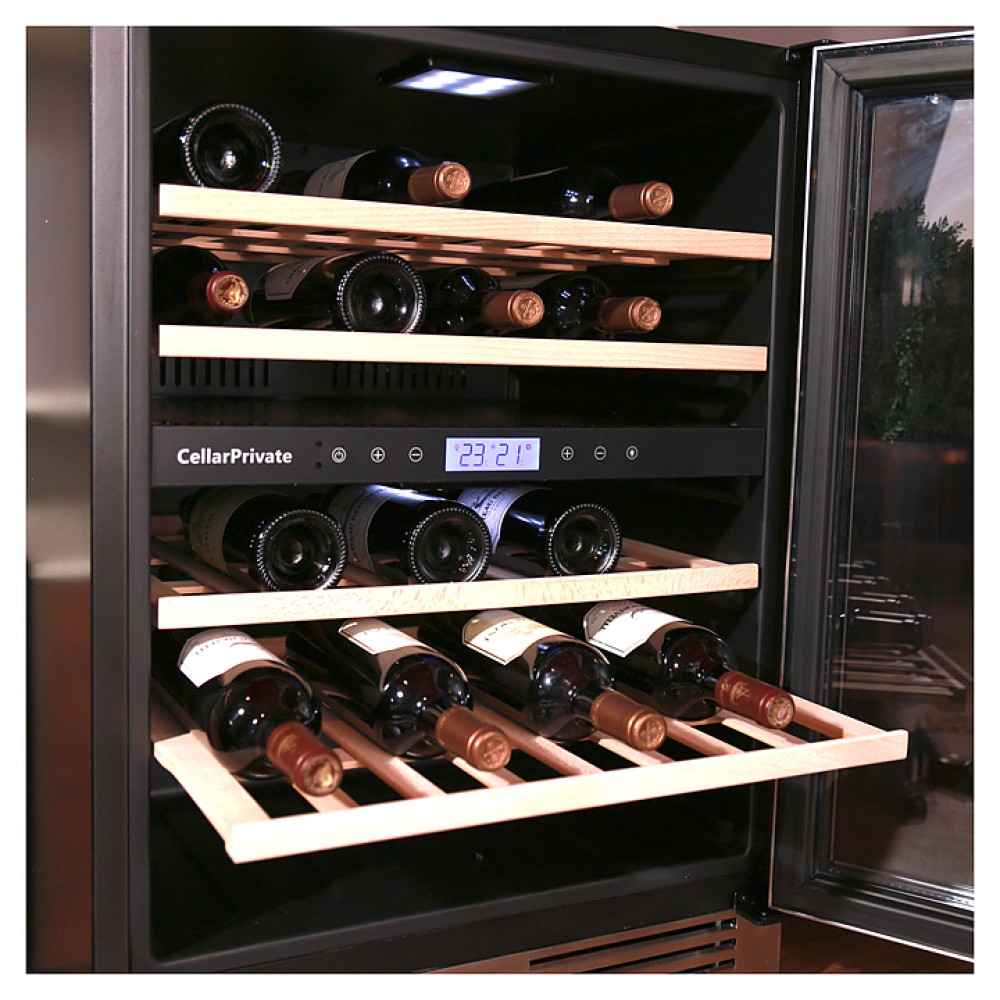 Винный шкаф Cellar Private CP043-2TW создает оптимальные условия для сохранения всех вкусовых свойств разливного вина в барах, ресторанах, специализированных магазинах, частных домах или квартирах. Модель оснащена светодиодной подсветкой мягкого синего цвета. Корпус выполнен из окрашенного металла, дверь - из металлической рамки белого цвета и двойного тонированного стеклопакета с УФ-фильтром, полки - из дерева.