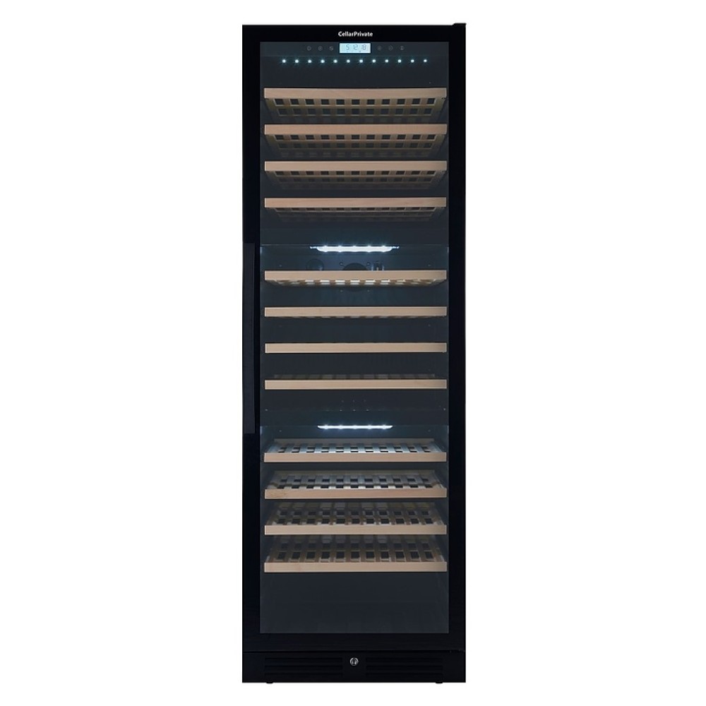 Винный шкаф Cellar Private CP154-3TB создает оптимальные условия для сохранения всех вкусовых свойств разливного вина в барах, ресторанах, специализированных магазинах, частных домах или квартирах. Модель оснащена цифровым дисплеем, сенсорным управлением, выключаемой светодиодной подсветкой холодного белого цвета, замком и 12 съемными полками. Корпус выполнен из окрашенного металла, дверь - из пластиковой рамы и двойного тонированного стеклопакета с УФ-фильтром, полки - из древесины.