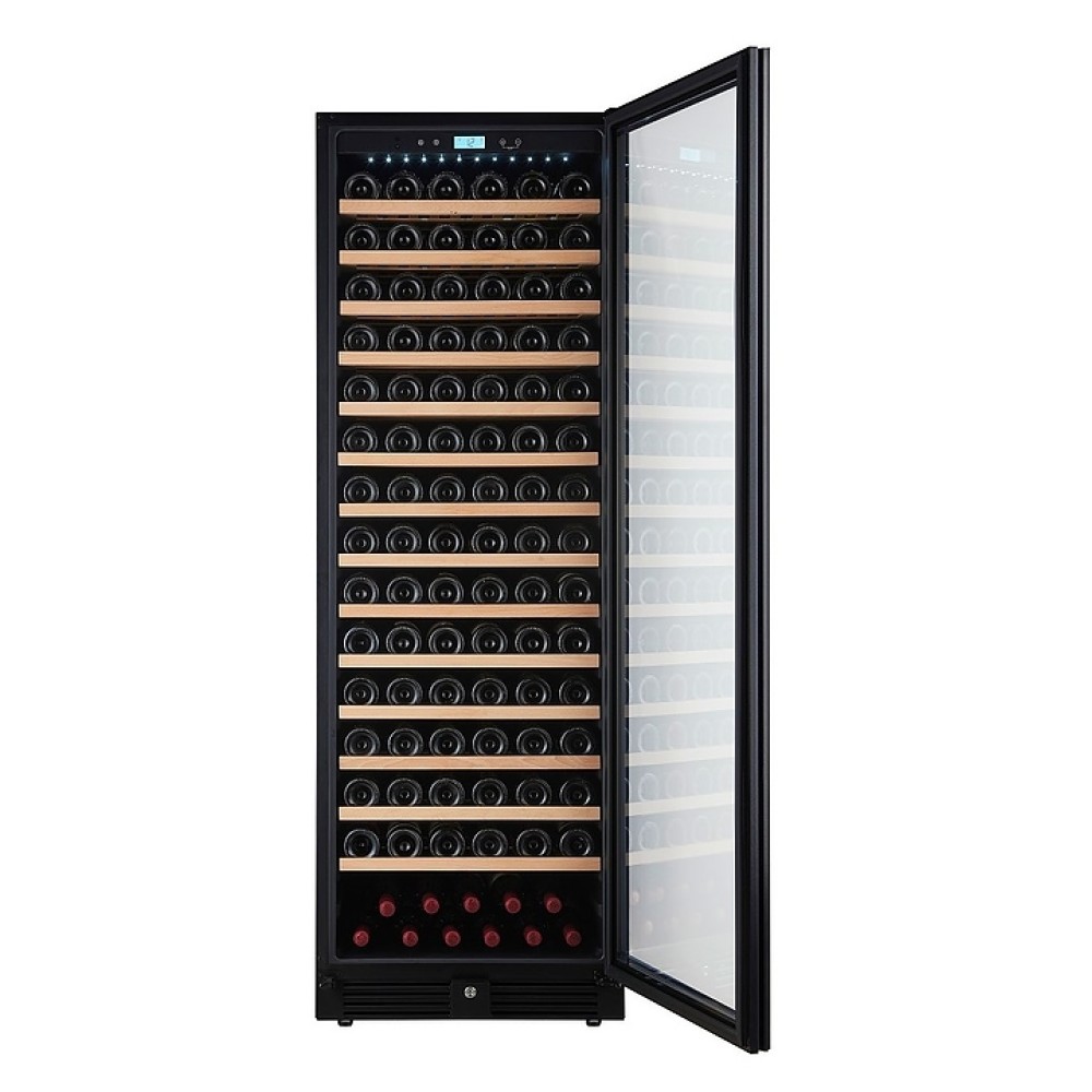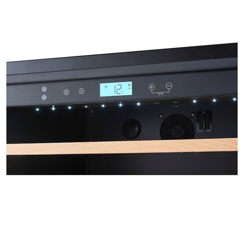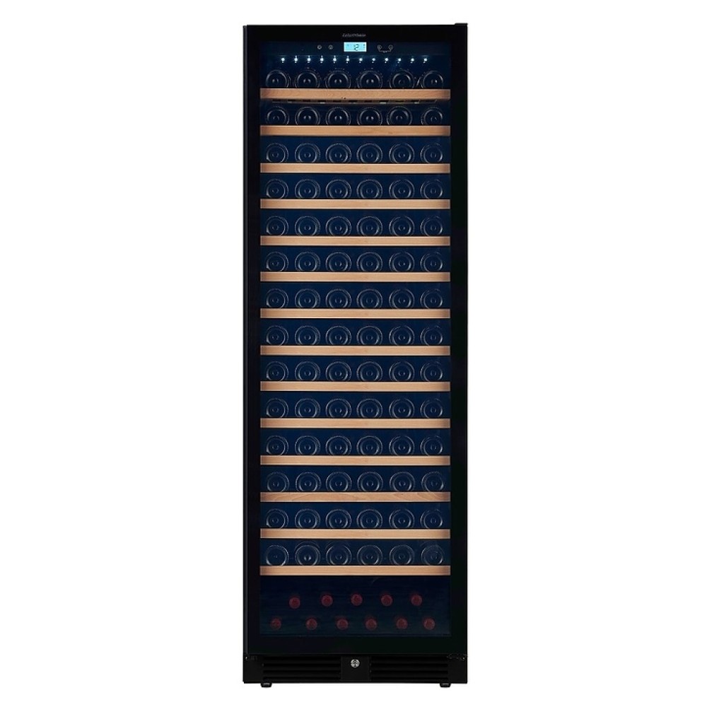 Встраиваемый винный шкаф Cellar Private СP165-1TBH предназначен для хранения при оптимальных условиях бутилированного вина различных сортов в барах, ресторанах, специализированных магазинах, подсобных складских помещениях, а также в домашних условиях. Модель оснащена 14 съемными полками, распашной перенавешиваемой дверью со скрытой рукояткой и прозрачным тонированным обзорным стеклом, а также сенсорной панелью управления с жидкокристаллическим дисплеем внутри камеры. Корпус выполнен из металла с покрытием черного цвета, рама двери – из пластика, полки – из массива древесины.
