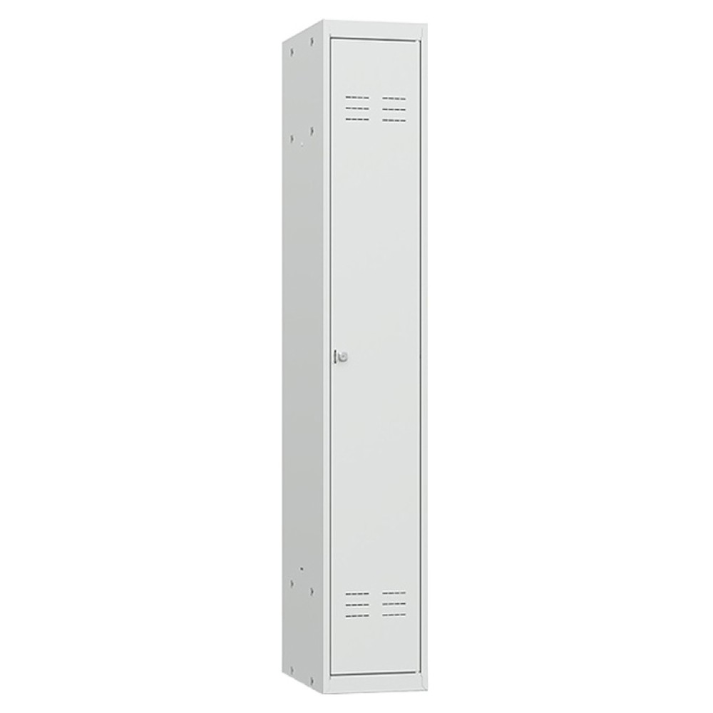 Шкаф Церера ШР-11 L400 предназначен для хранения одежды и других личных вещей посетителей и сотрудников в магазинах, супер- и гипермаркетах, торгово-развлекательных центрах, офисах и на других предприятиях. Модель состоит из 1 секции, оснащенной полкой, металлической перекладиной для вешалок, 2 крючками для одежды, замком повышенной секретности и проушиной под навесной замок. Двери шкафа сверху и снизу имеют вентиляционные отверстия-жалюзи, оснащаются дополнительными ребрами жесткости.