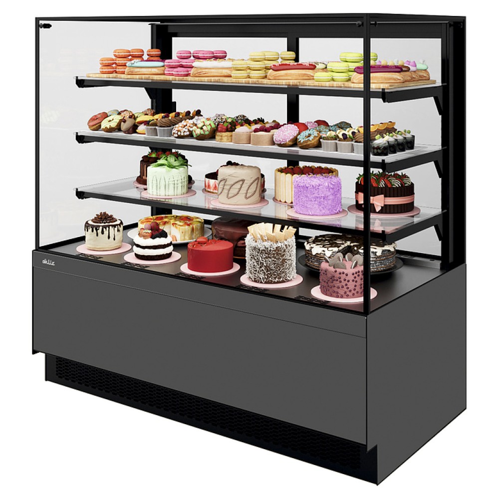 Кондитерская витрина Chilz VETE II KUB LUX 90 предназначена для демонстрации, охлаждения и краткосрочного хранения кондитерских изделий, закусок и десертов на предприятиях общественного питания и торговли. Модель оснащена 3 полками, нижней зоной выкладки и электронным контроллером.