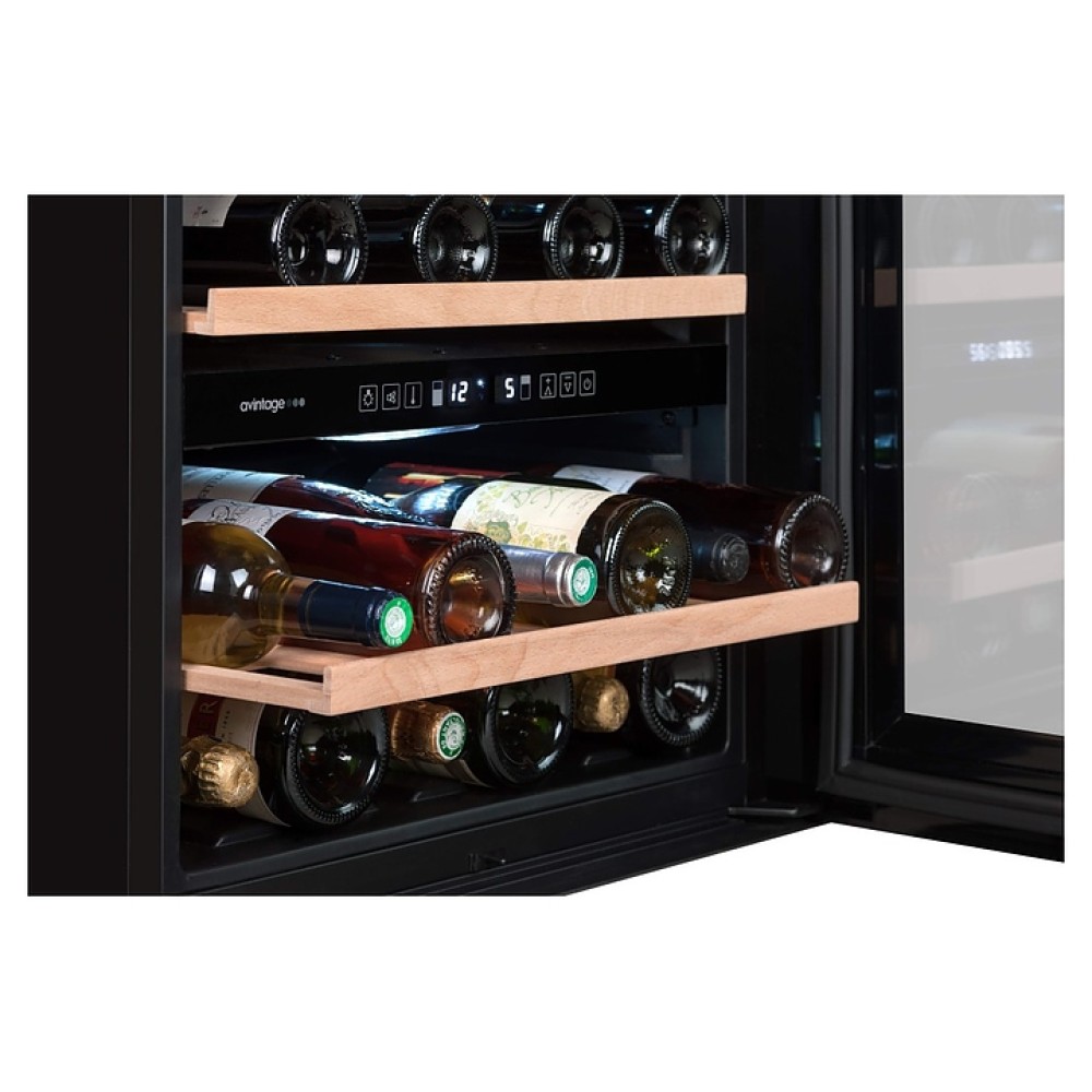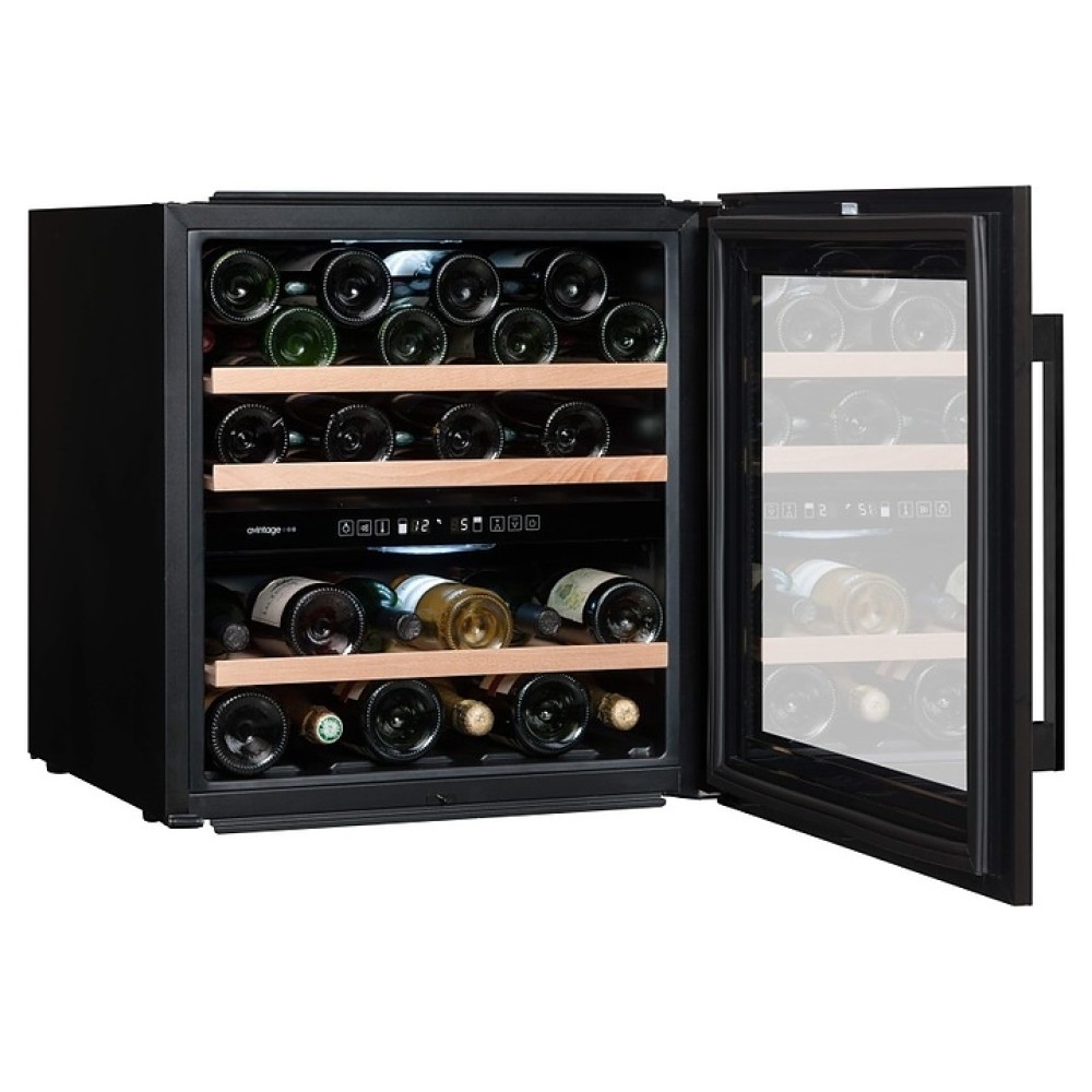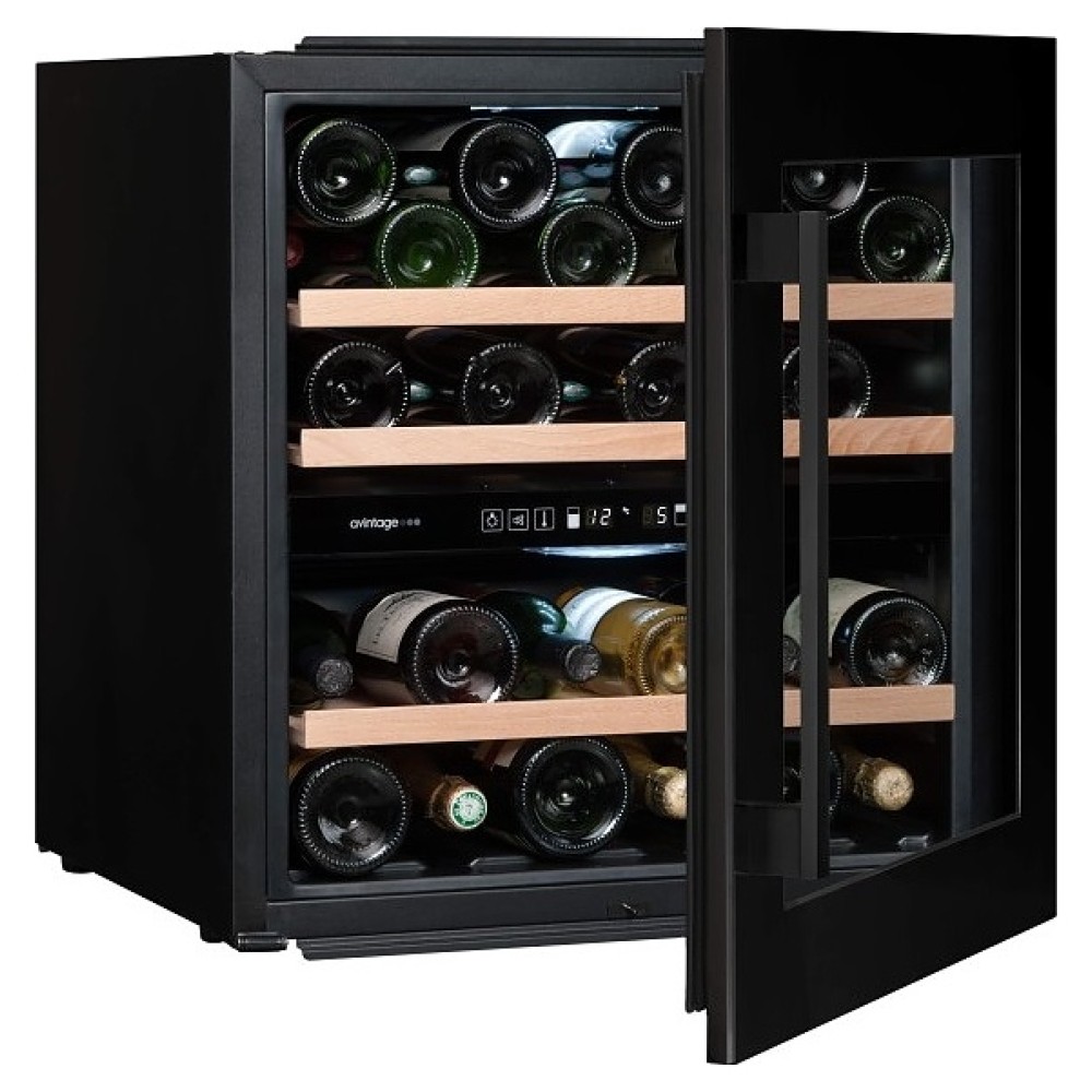 Винный шкаф Climadiff Avintage AVI60CDZF предназначен для хранения при оптимальных условиях и демонстрации бутилированного вина различных сортов в барах, ресторанах, специализированных магазинах, складских помещениях, а также домашних условиях. Модель оснащена холодильной камерой с 2 независимыми температурными зонами, правосторонней перенавешиваемой распашной дверью на скрытых петлях, вертикальной рукояткой, обзорным остеклением, кабелем питания с вилкой, расположенной внутри камеры панелью управления с сенсорными клавишами и светодиодным цифровым дисплеем с белой подсветкой индикации. Корпус и рукоятка выполнены из металла с антикоррозийным покрытием черного цвета, рама двери – из черного оргстекла, полки – из массива древесины светлых пород.