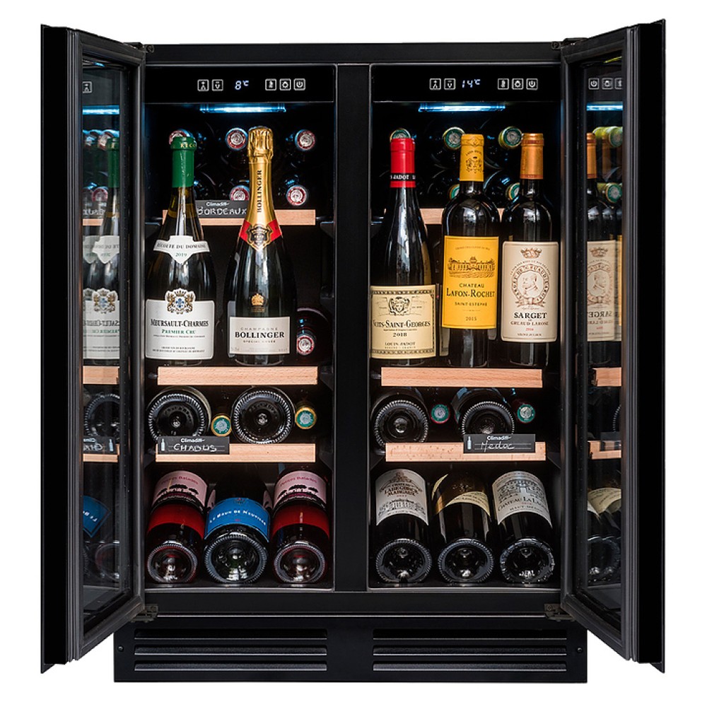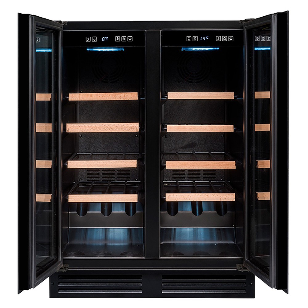 Винный шкаф Climadiff Avintage AVU49DPB1 предназначен для хранения вина при определенном уровне влажности и температуры в ресторанах, специализированных магазинах, отелях, подсобных складских помещениях, в частных домах или квартирах. Модель оснащена 2 камерами, 2 светодиодными дисплеями, активным вентилятором для обеспечения равномерной температуры в камерах и 4 регулируемыми ножками. Полки выполнены из металла с отделкой из дерева.