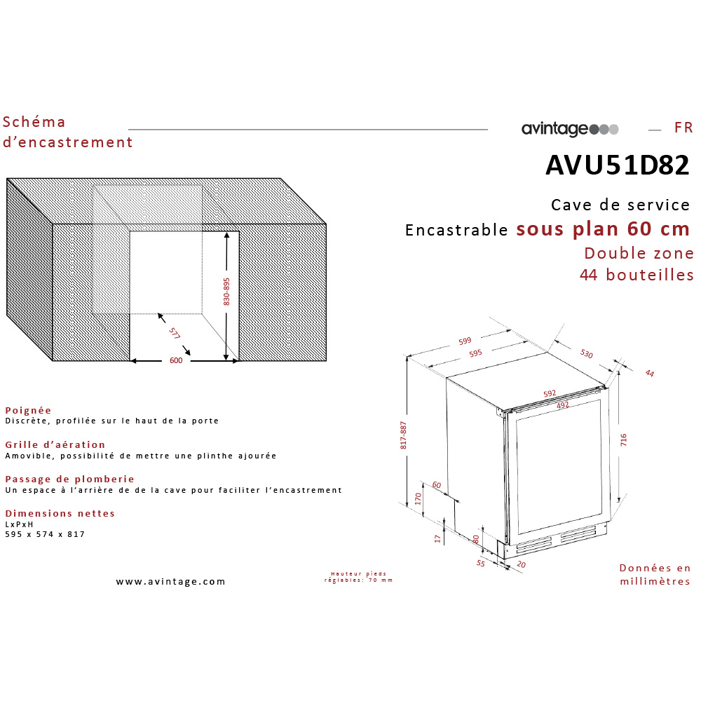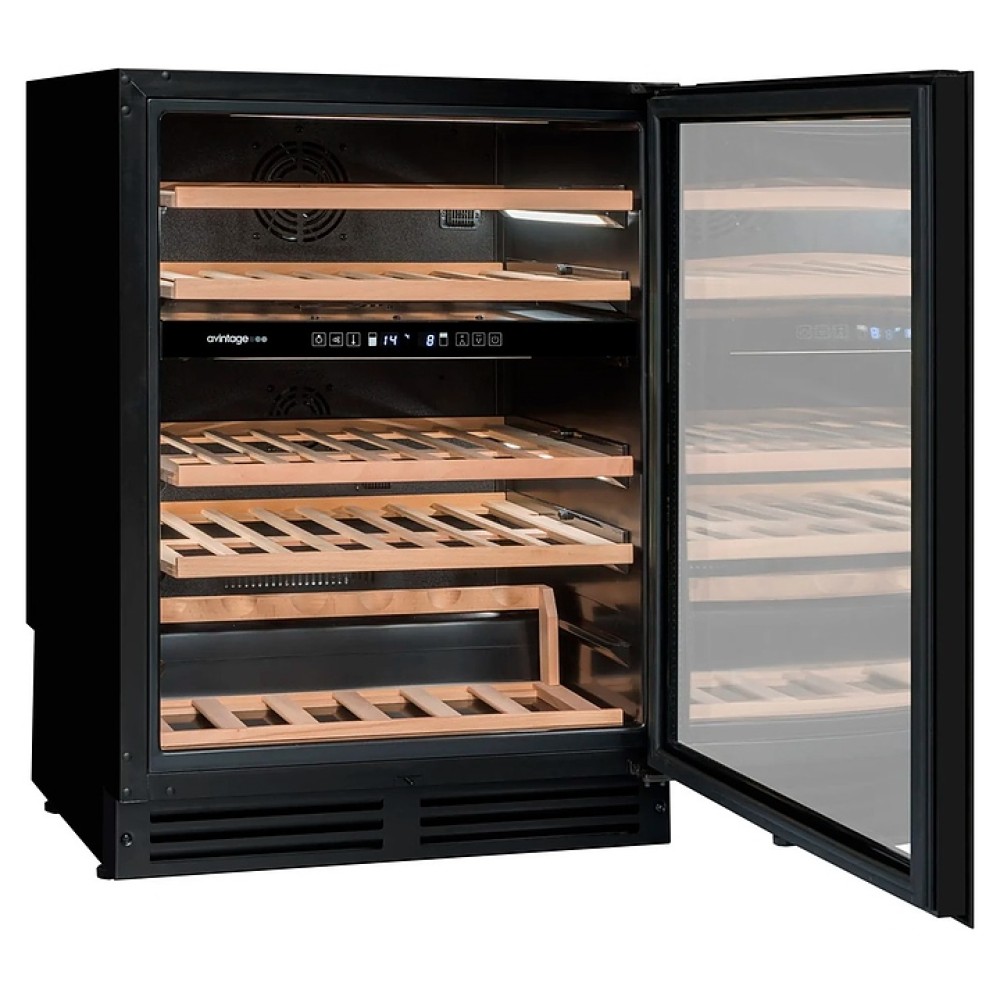 Винный шкаф Climadiff Avintage AVU51D82 предназначен для хранения при оптимальных условиях и демонстрации бутилированного вина различных сортов в барах, ресторанах, специализированных магазинах, складских помещениях, гостиницах, а также домашних условиях. Модель оснащена холодильной камерой с 2 независимыми температурными зонами, правосторонней перенавешиваемой распашной дверью на скрытых петлях, обзорным остеклением, кабелем питания с вилкой, расположенной внутри камеры панелью управления с сенсорными клавишами и светодиодным цифровым дисплеем с белой подсветкой индикации. Корпус и рукоятка выполнены из металла с антикоррозийным покрытием черного цвета, внутренняя облицовка камеры черного цвета, полки – из массива буковой древесины.