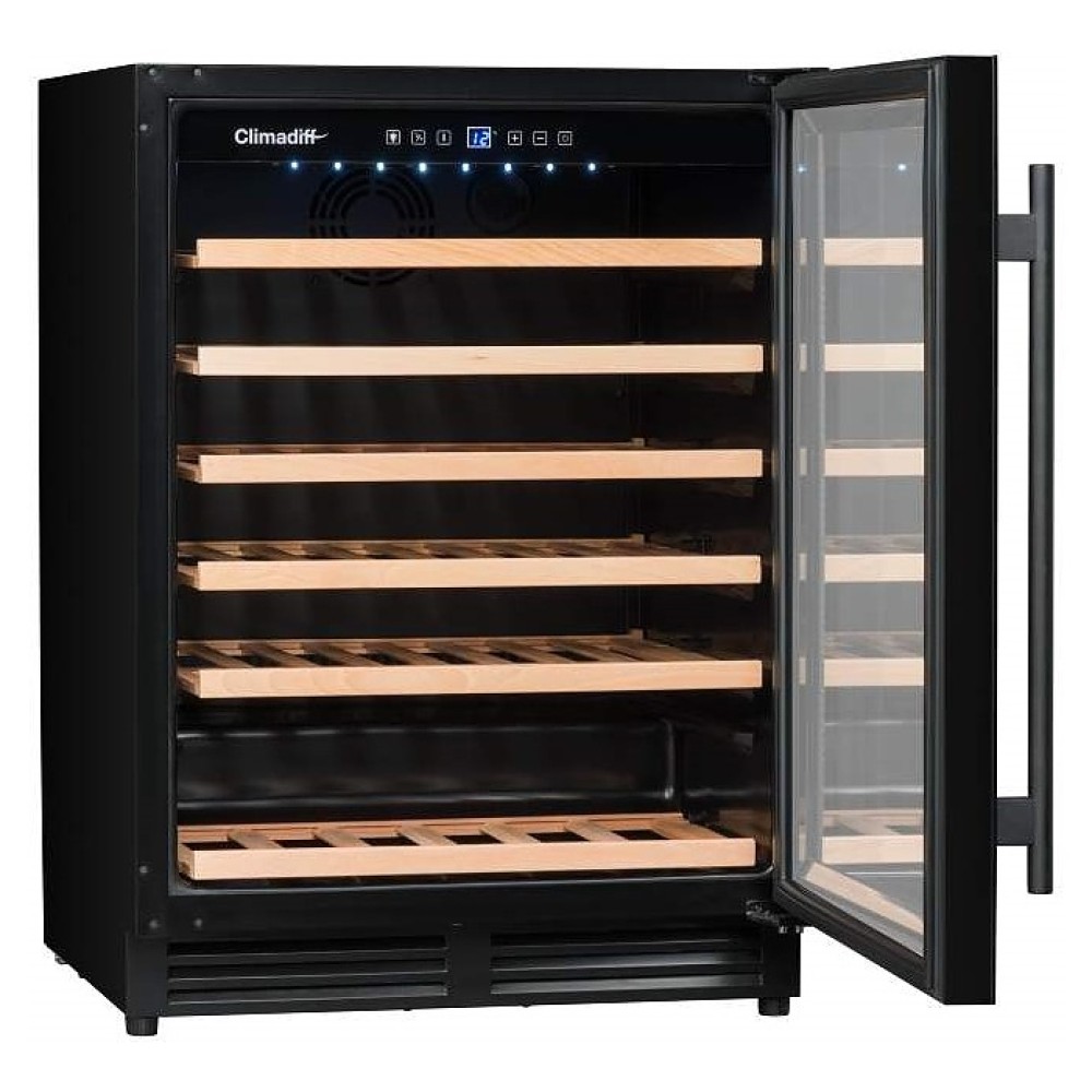 Винный шкаф Climadiff CBU51S2B предназначен для хранения вина при определенном уровне влажности и температуры в ресторанах, специализированных магазинах, отелях, подсобных складских помещениях, в частных домах или квартирах. Модель оснащена электронным управлением, термометром с цифровым дисплеем, белым светодиодным освещением с выключателем и угольным фильтром. Полки выполнены из бука, дверь - из двойного стеклопакета.