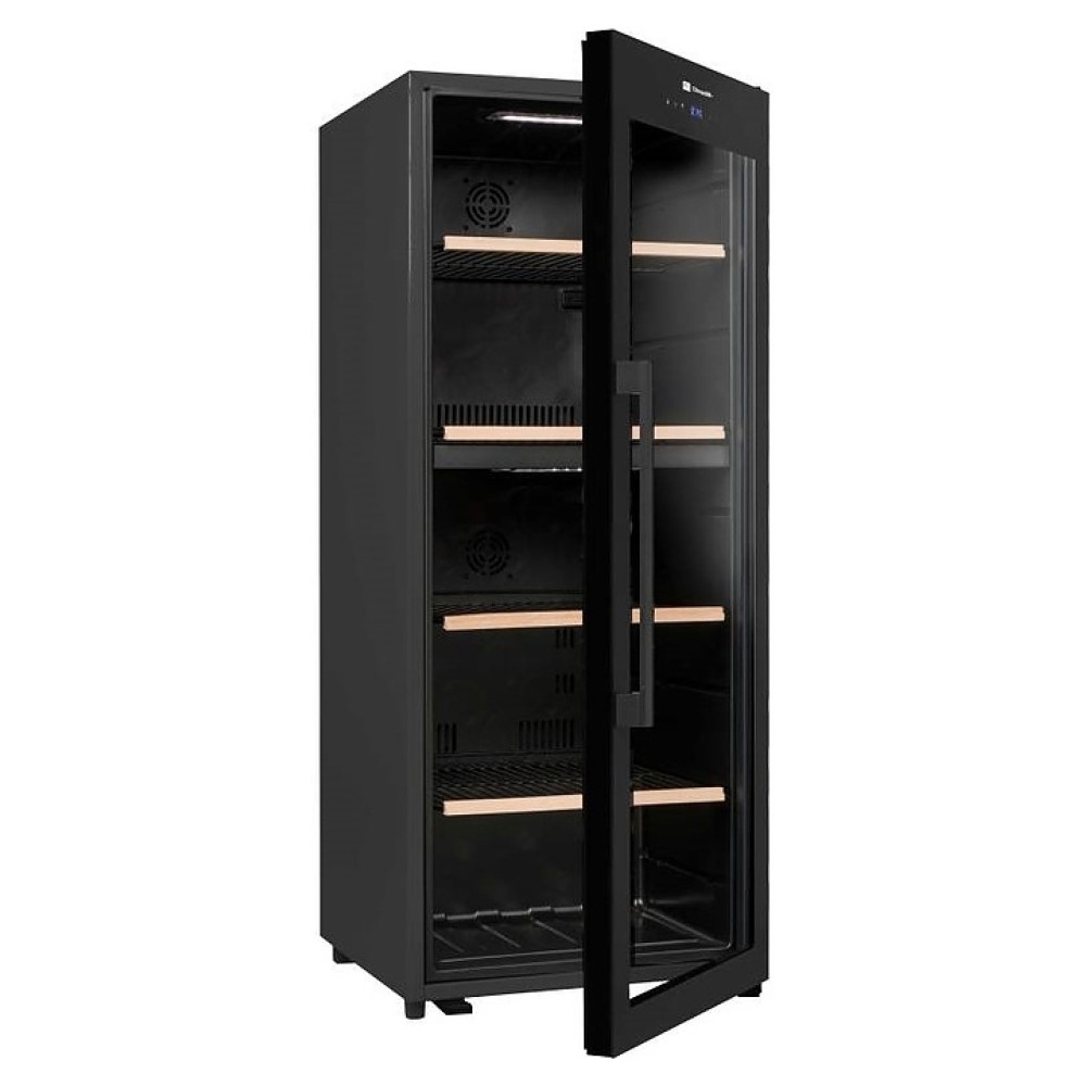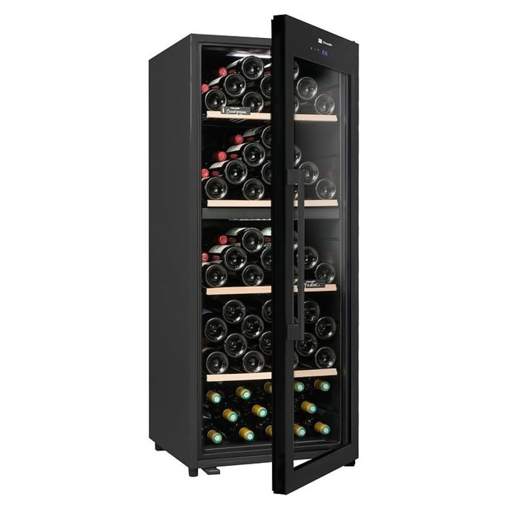 Винный шкаф Climadiff CLD115B1 предназначен для хранения вина при определенном уровне влажности и температуры в ресторанах, специализированных магазинах, отелях, подсобных складских помещениях, в частных домах или квартирах. Модель оснащена сенсорным цифровым дисплеем и 2 регулируемыми ножками. Полки выполнены из проволоки с фасадом из бука.