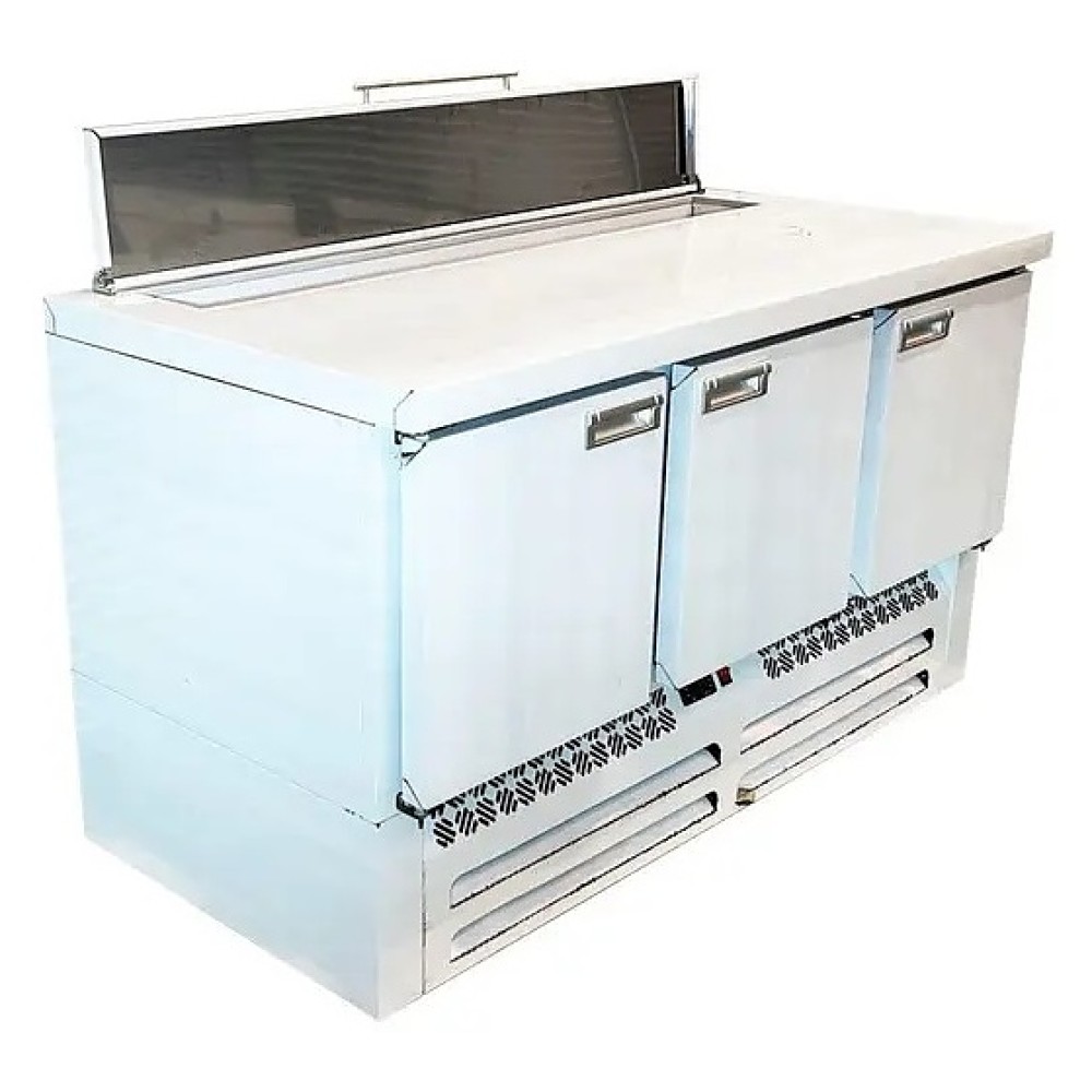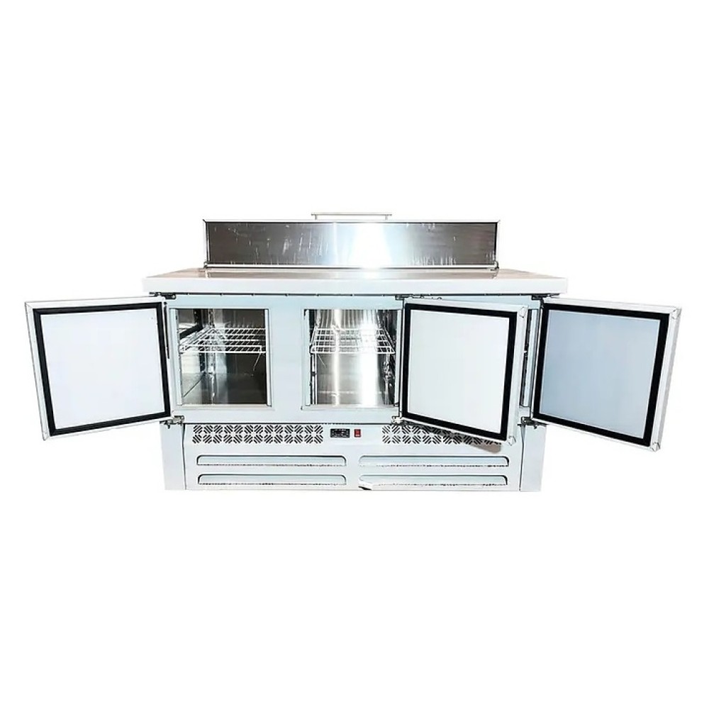 Холодильный стол для пиццы CLSY LUXE Saladetta 1,485 предназначен для обработки ингредиентов в процессе приготовления блюд, а также кратковременного хранения скоропортящихся продуктов и напитков на предприятиях общественного питания и торговли. Модель оснащена салат-баром (саладетта), который можно использовать для приготовления пиццы, шаурмы, салатов и др., а также удобной и простой в использовании электронной панелью управления и тремя распашными дверями с доводчиками. Корпус и столешница выполнены из нержавеющей стали марки AISI 430.