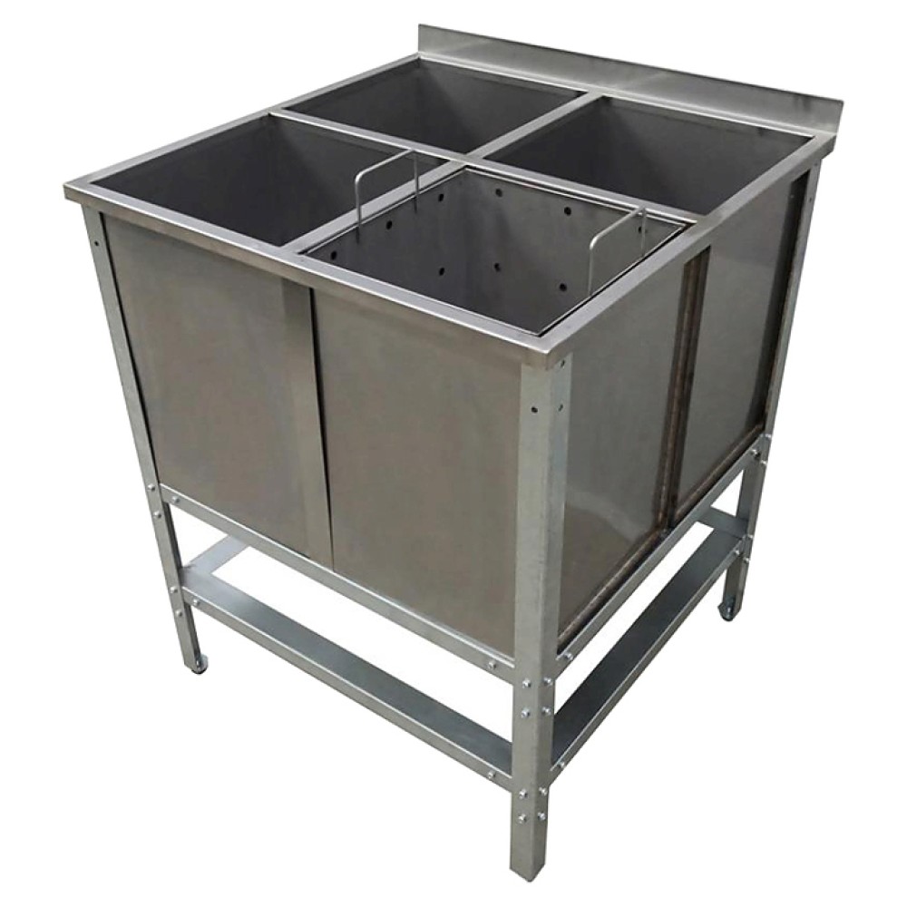 Моечная ванна ЦМИ ВЛМЯ/304-530 предназначена для санитарной обработки яиц на предприятиях общественного питания и торговли. Модель оснащена перфорированной емкостью для мойки и 4 сливными отверстиями под установку евросифона. Каркас выполнен из уголка оцинкованной стали, мойки и емкость - из нержавеющей стали AISI 304.