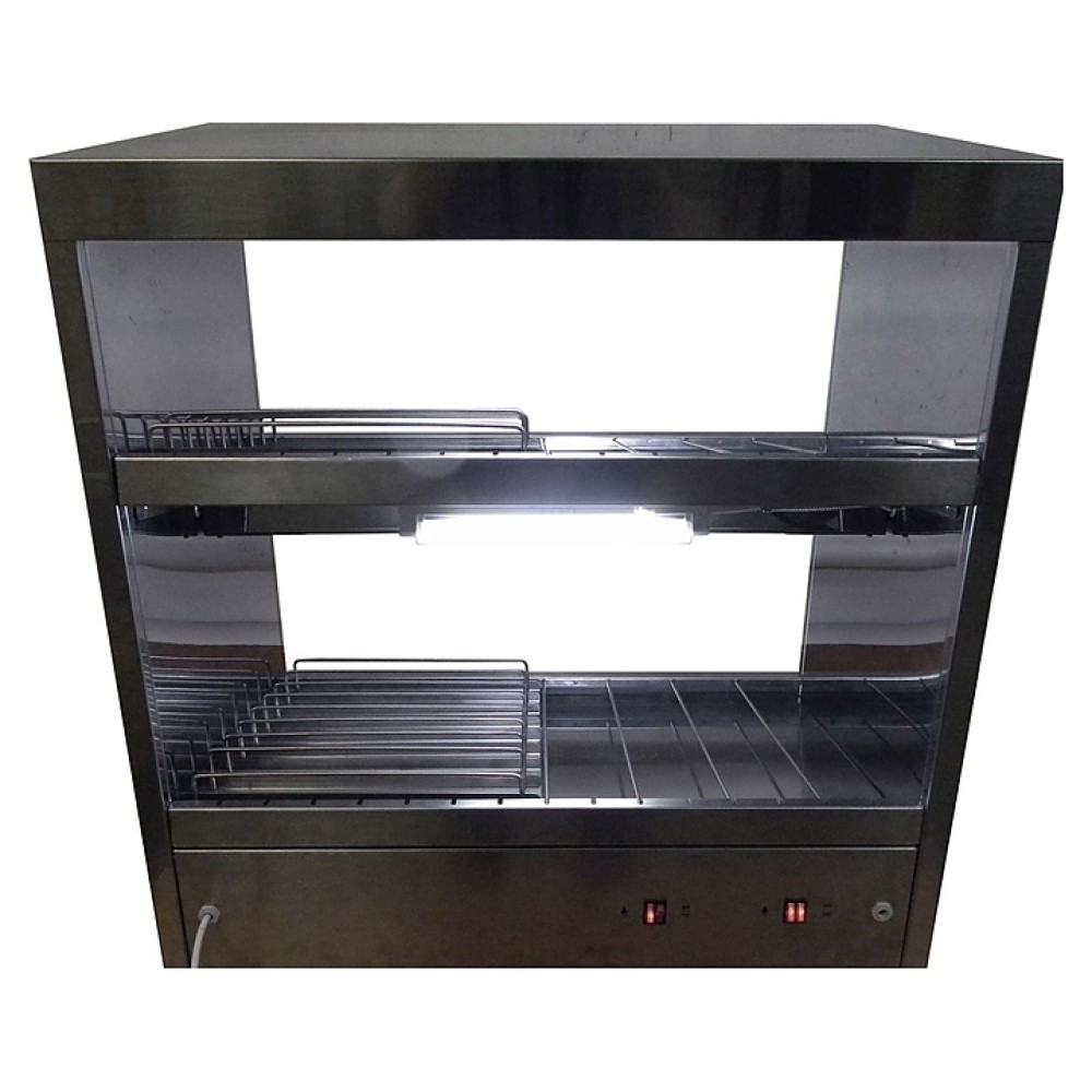 Тепловая витрина ЦМИ ВТ-2-87/60 используется на предприятиях общественного питания и торговли, а также в производственных цехах, деятельность которых связана с выпуском гастрономических товаров, для демонстрации, подогрева и кратковременного хранения различных блюд и продуктов. Модель оснащена подсветкой. Корпус и внутренние элементы выполнены из нержавеющей стали.