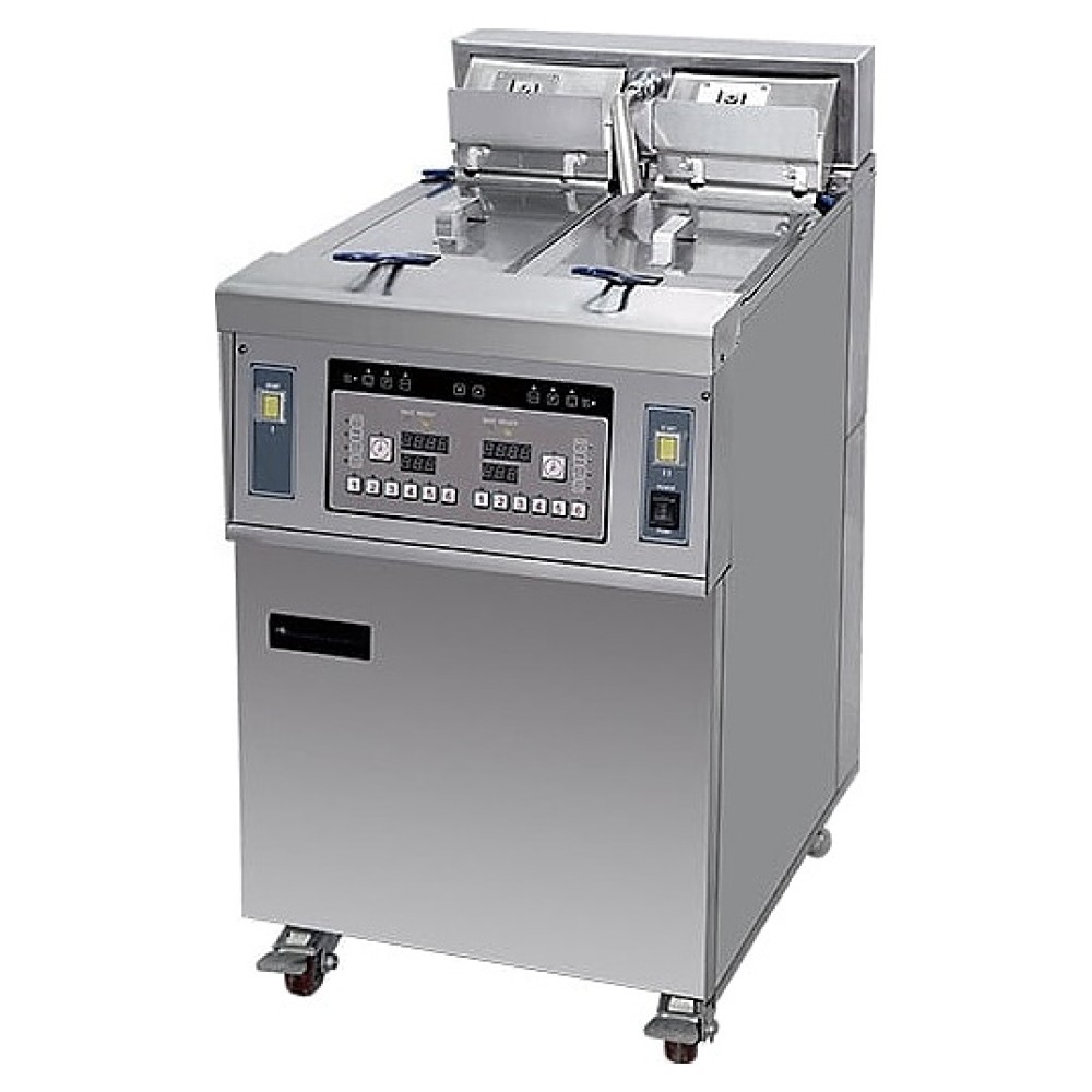 Напольная фритюрница CNIX OFE-28В используется на предприятиях пищевой промышленности, общественного питания и торговли для приготовления картофеля-фри и других блюд во фритюре. Модель оснащена 2 открытыми прямоугольными ваннами, 2 крышками с ручками, техническим отделением с распашной дверью, выдвижным дренажным поддоном, кнопочной панелью управления с цифровыми дисплеями и светодиодными индикаторами. Корпус и ванны выполнены из высококачественной нержавеющей стали.