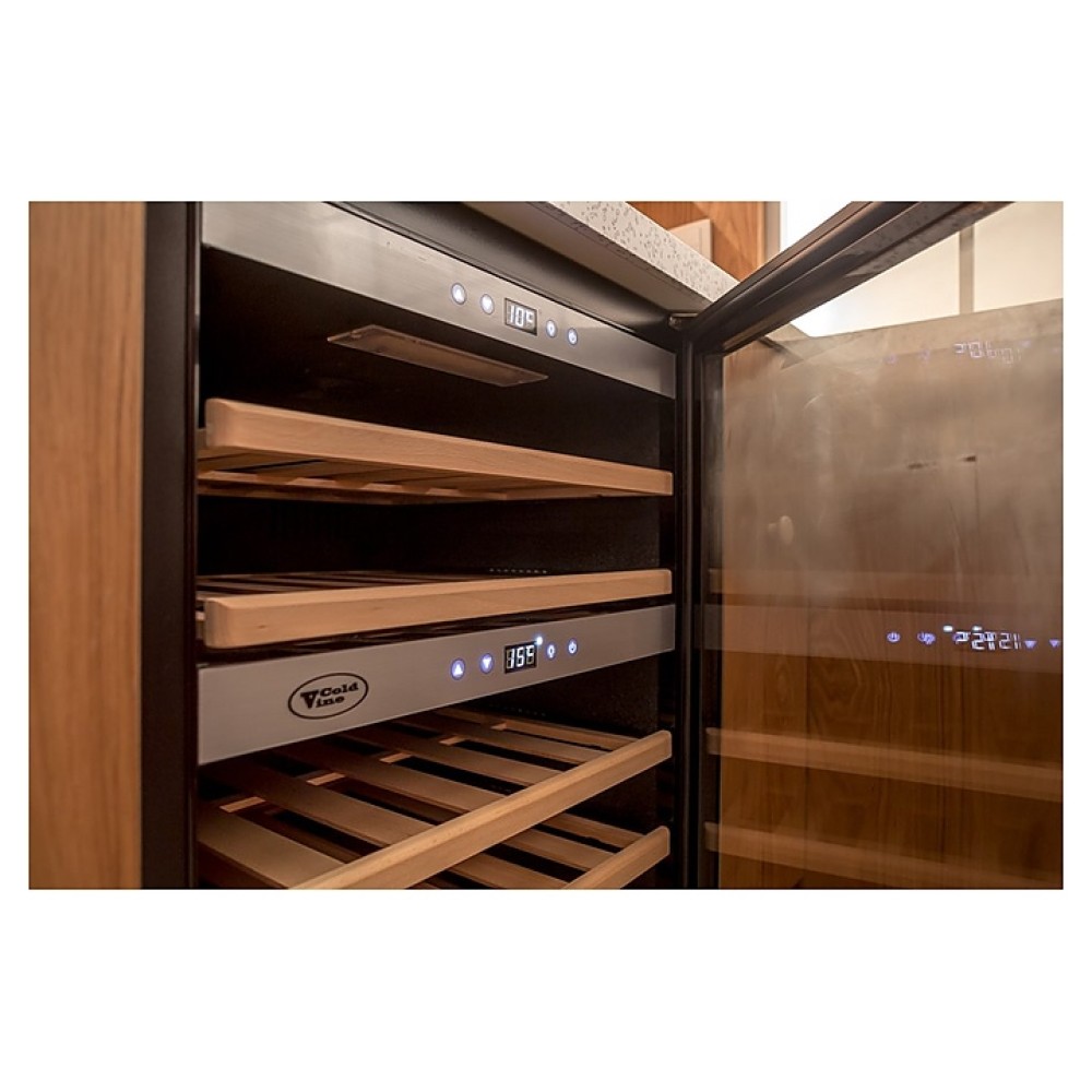 Винный шкаф Cold Vine C40-KST2 создает оптимальные условия для сохранения всех вкусовых свойств разливного вина. Модель оснащена синей / белой светодиодной подсветкой. Корпус выполнен из металла, дверь со стальной рамой - из тонированного стеклопакета с защитой от УФ-излучения.