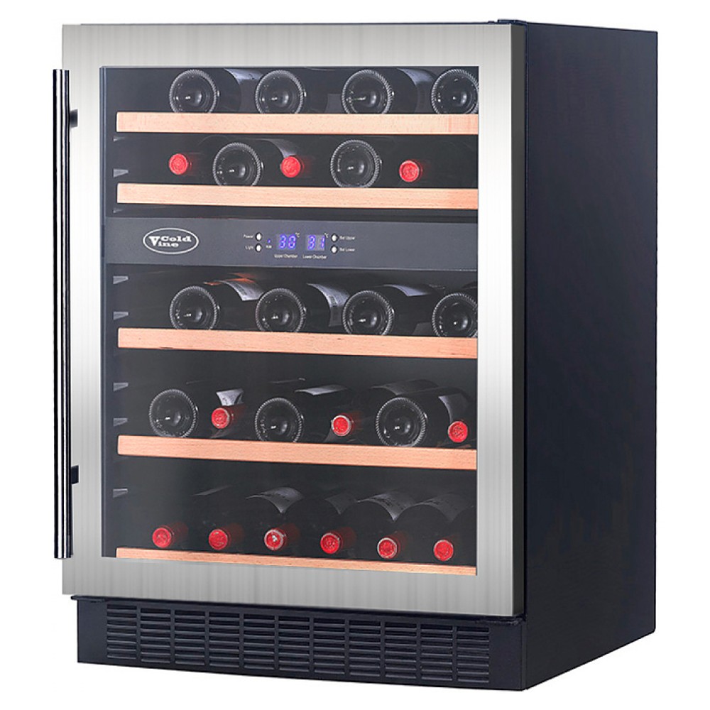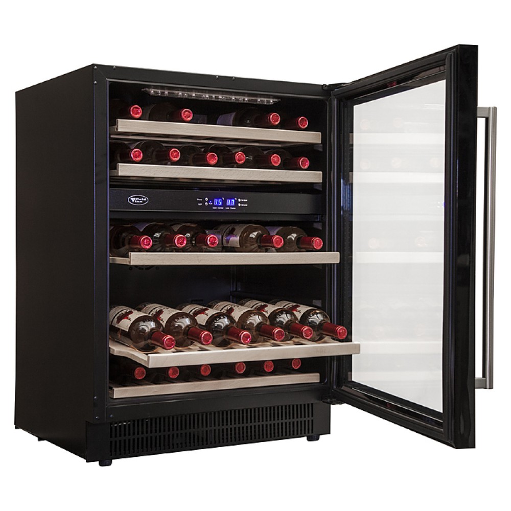 Винный шкаф Cold Vine C44-KST2 создает оптимальные условия для сохранения всех вкусовых свойств разливного вина. Модель оснащена 5 деревянными полками и синей светодиодной подсветкой. Корпус выполнен из окрашенной в черный цвет стали, дверь - из двойного стекла с УФ-фильтром, рамка двери - из бесшовной нержавеющей стали, ручка двери - из стали, полки - из массива бука.