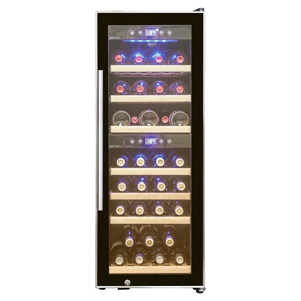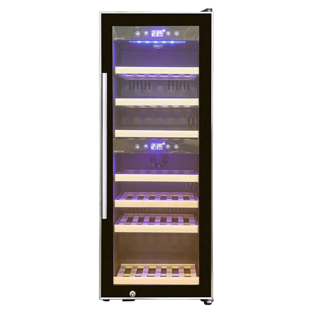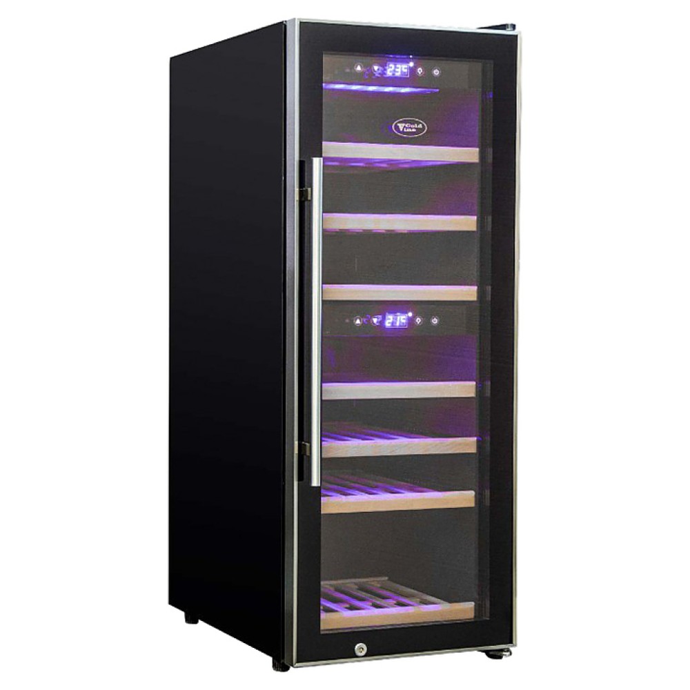Винный шкаф Cold Vine C50-KBF2 создает оптимальные условия для сохранения всех вкусовых свойств разливного вина. Модель оснащена встроенными вентиляторами в каждой зоне, 7 деревянными полками без лакового покрытия на металлических направляющих (все, кроме нижней) и голубой светодиодной подсветкой. Дверь в стальной окантовке выполнена из прозрачного двойного стекла с УФ-фильтром.