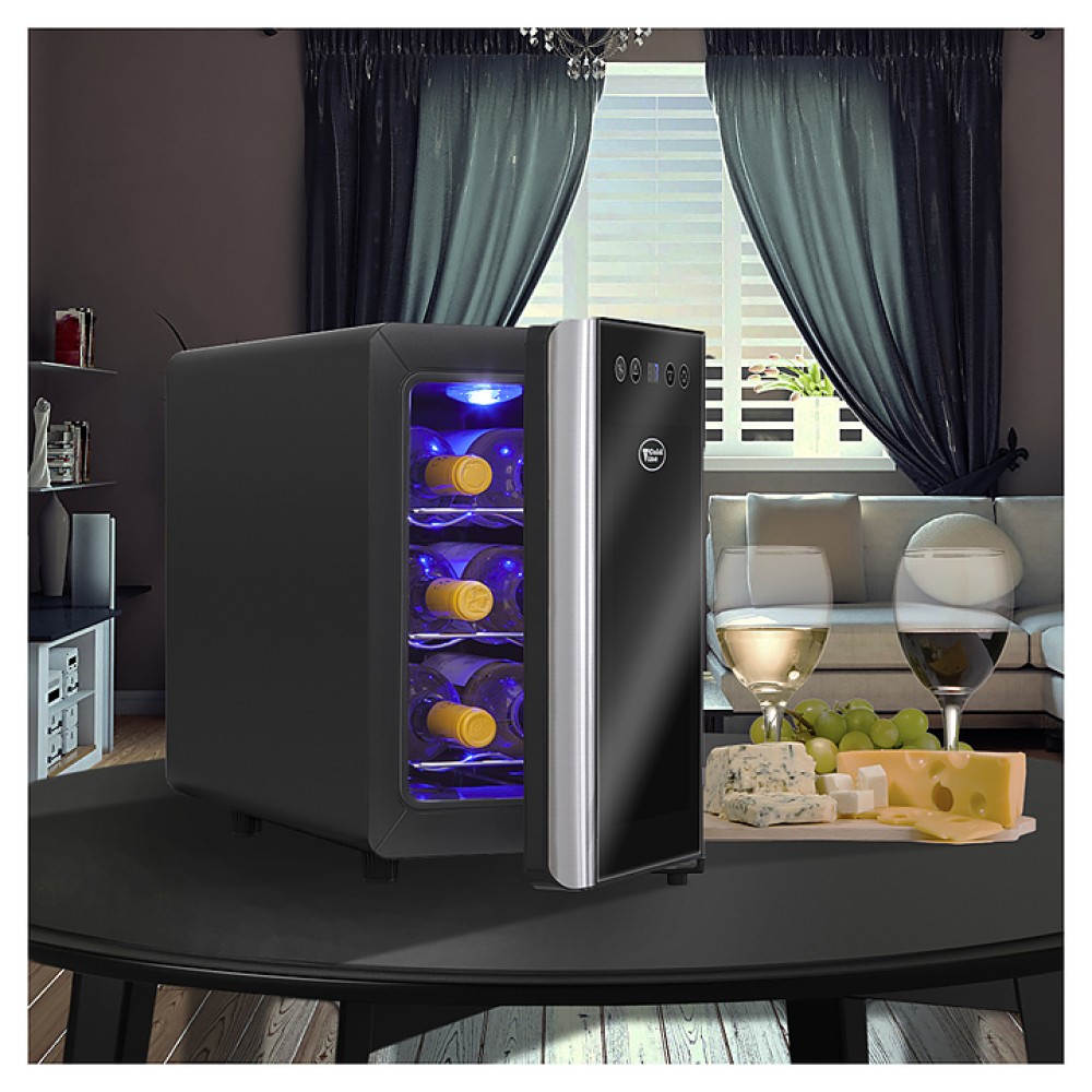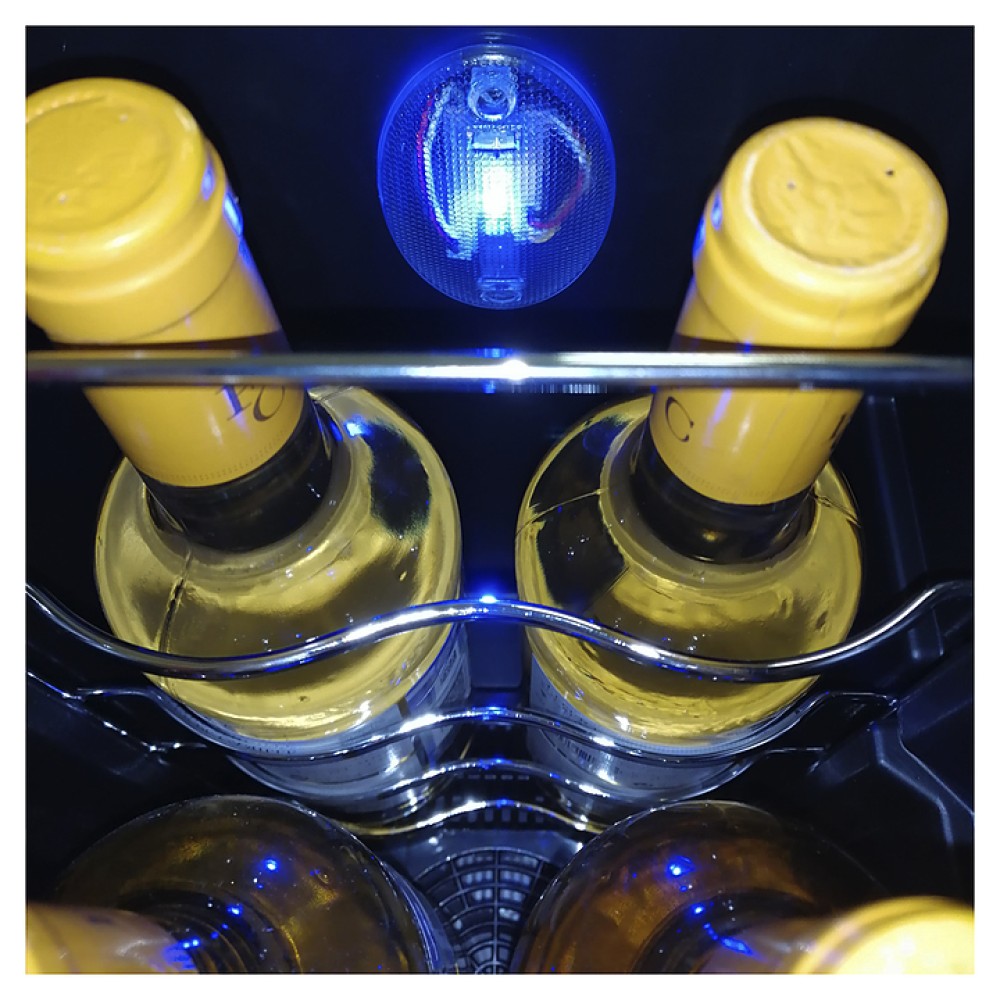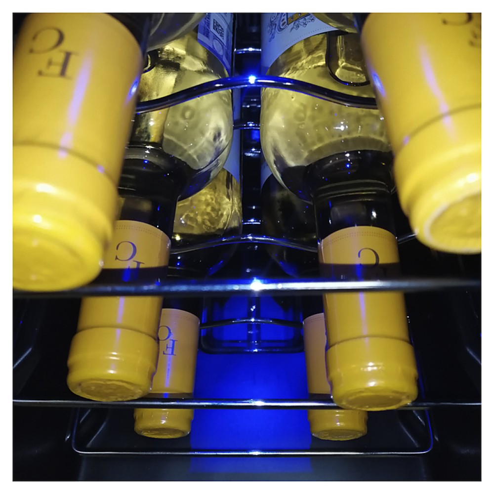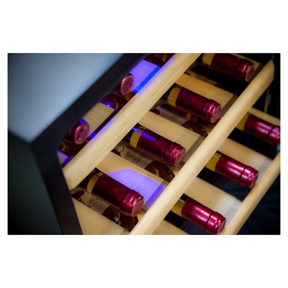 Винный шкаф Cold Vine C6-TBSF1 создает оптимальные условия для сохранения всех вкусовых свойств разливного вина. Модель оснащена встроенным вентилятором, 3 полками из хромированной стали, голубой светодиодной подсветкой и регулируемыми ножками. Корпус выполнен из окрашенной в черный цвет стали, дверь со стальной рамой по периметру - из зеркального тонированного стеклопакета с защитой от УФ-излучения.