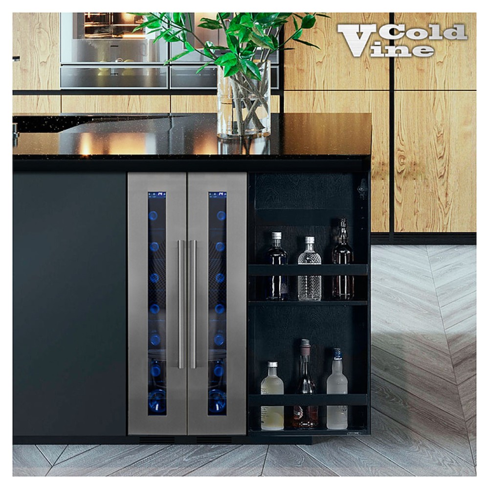 Винный шкаф Cold Vine C7-KST1 создает оптимальные условия для сохранения всех вкусовых свойств разливного вина. Модель оснащена внутренним и внешним вентилятором, электронным термостатом, и синей подсветкой . Корпус выполнен из металла черного цвета, дверь - из бесшовной нержавеющей стали и тройного стекла с УФ-фильтром, полки - из пластифицированного металла, ручка двери - из нержавеющей стали.