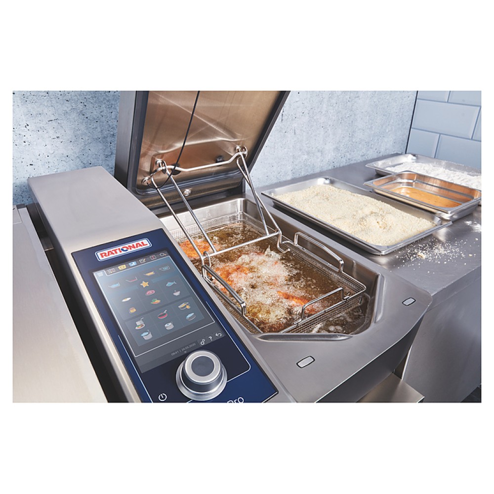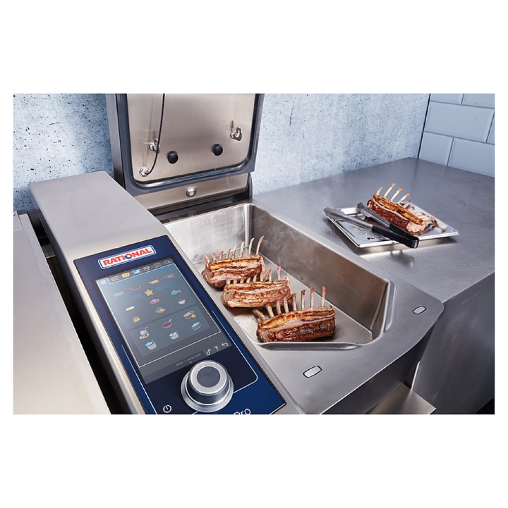 Универсальный кухонный аппарат Rational iVario Pro 2-S предназначен для приготовления широкого спектра блюд путем жарки, варки, тушения, обжаривания во фритюре и готовки под давлением и в вакууме с частичным контролем со стороны повара. Такое оборудование может легко заменить собой опрокидывающиеся сковороды, котлы и фритюрницы или дополнить "тепловой остров". Модель оснащена цветным сенсорным дисплеем и поворотным регулятором.