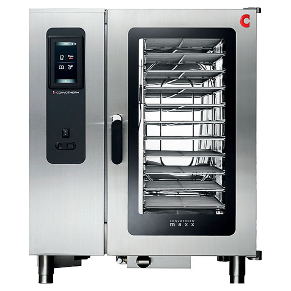 Пароконвектомат Convotherm maxx 10.10 с душем предназначен для обжаривания, приготовления на пару, бланширования, запекания и других видов тепловой обработки продуктов на предприятиях общественного питания. Модель оснащена 7-дюймовым TFT дисплеем с высоким разрешением, многоточечным термощупом, 3-скоростным вентилятором и функцией стерилизации паром.