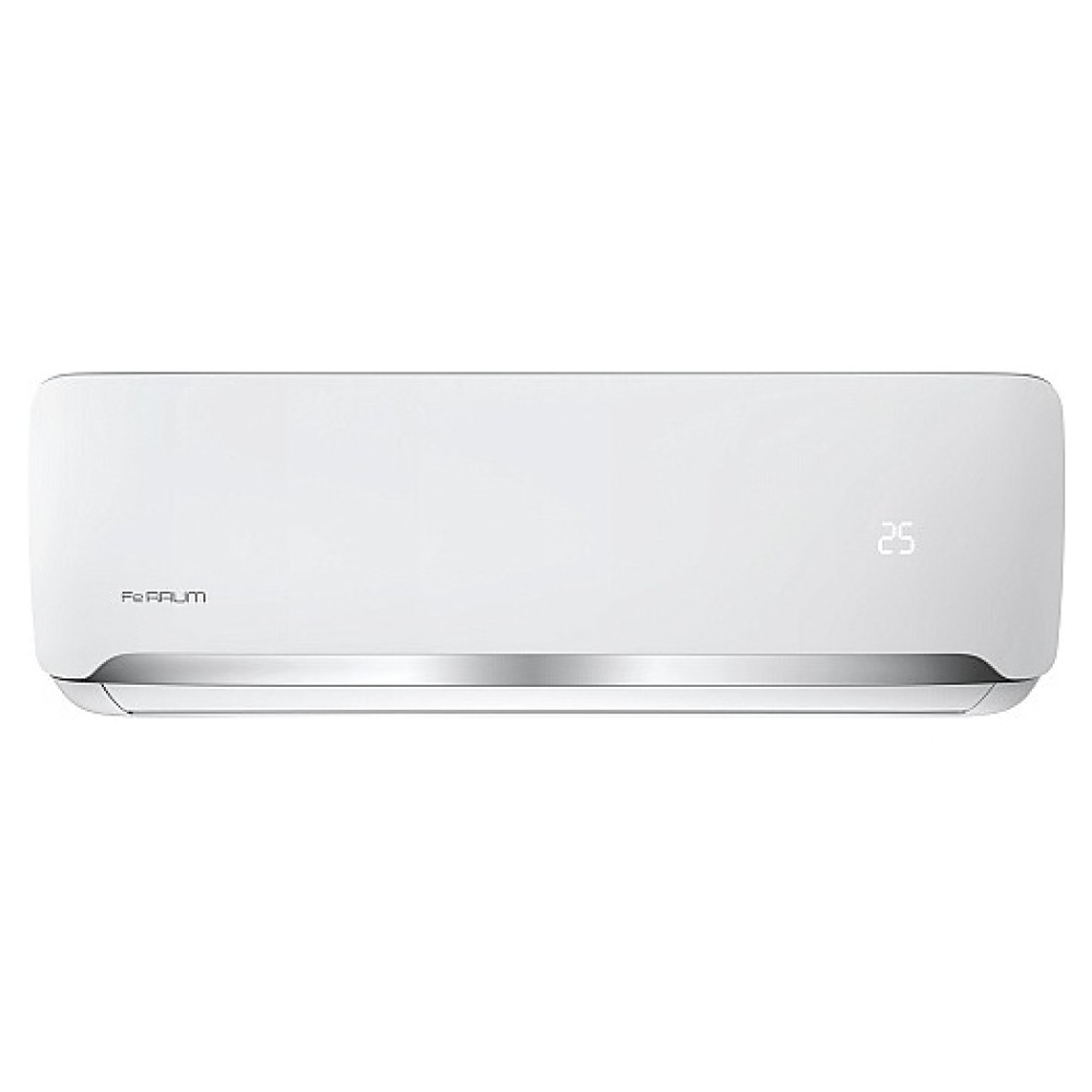 Настенная сплит-система Ferrum FIS24F2_ / FOS24F2_-WS30 серии F2 WS30 используется для создания максимально кофмортных условий микроклимата в жилых, вдминистративных и коммерческих помещениях. Модель состоит из внутреннего блока FIS24F2_ и наружного блока FOS24F2_-WS30. Наружный блок оснащен 3-лопастным вентилятором, защитными решеткой и крышкой для сервисных вентилей, внутренний блок – воздухозаборной решеткой, откидной лицевой панелью, подвижной горизонтальной заслонкой, электронным блоком управления и светодиодным дисплеем скрытого типа с проецируемой на фронтальную панель индикацией, пульт – кнопочной клавиатурой и информативным жидкокристаллическим дисплеем с фоновой подсветкой. Облицовка внутреннего блока выполнена из пластика с поверхностью белого цвета и декоративной окантовкой лицевой панели серебристого оттенка, корпус пульта – из ударопрочного белого пластика, корпус наружного блока – из стали с антикоррозийным покрытием белого цвета, теплообменники с гидрофобным антикоррозийным покрытием Golden Fin.