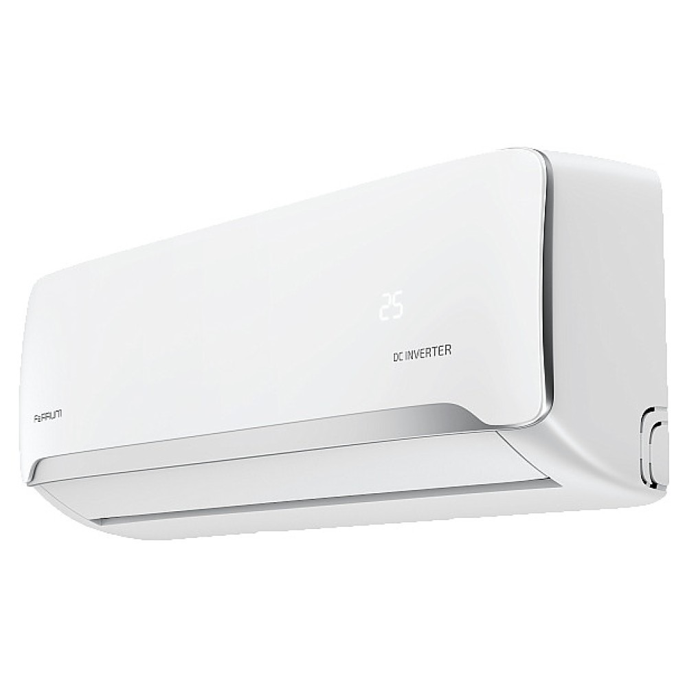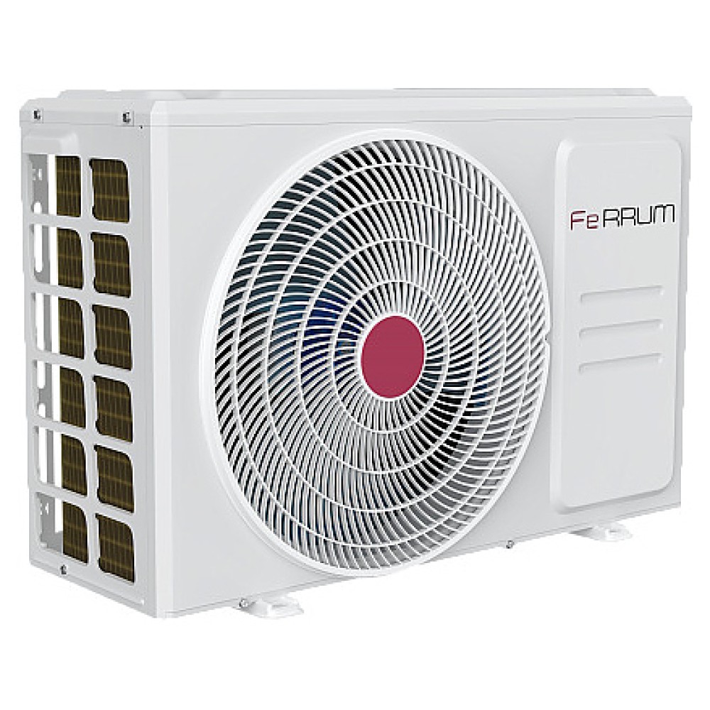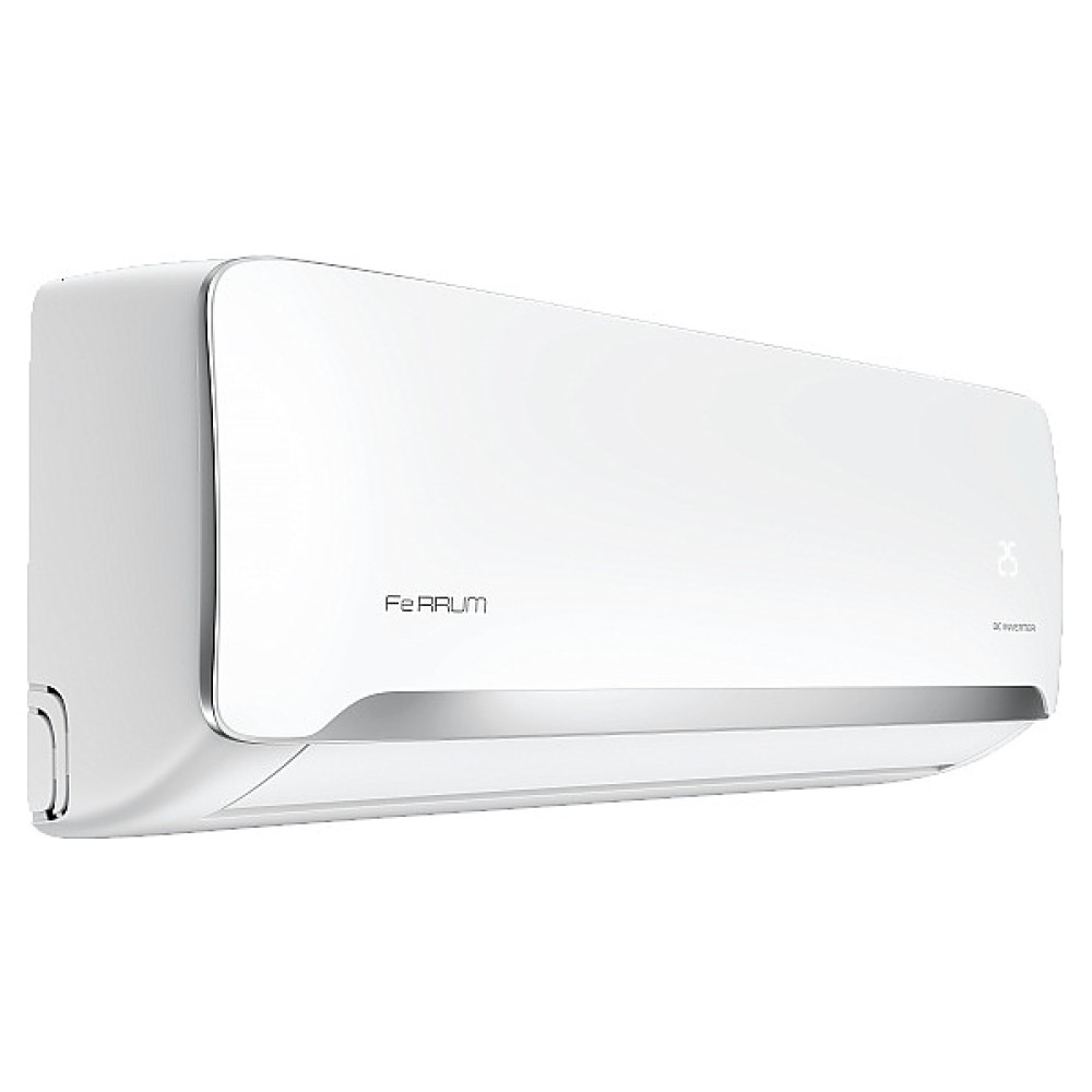 Настенная сплит-система Ferrum iFIS18F2С / iFOS18F2С серии FORCE FULL DC Inverter используется для создания максимально кофмортных условий микроклимата в жилых, вдминистративных и коммерческих помещениях. Модель состоит из внутреннего блока iFIS18F2С и наружного блока iFOS18F2С. Наружный блок оснащен 3-лопастным вентилятором, защитными решеткой и крышкой для сервисных вентилей, внутренний блок – воздухозаборной решеткой, откидной лицевой панелью, подвижными горизонтальной заслонкой и вертикальными жалюзи, электронным блоком управления и светодиодным дисплеем скрытого типа с проецируемой на фронтальную панель индикацией, пульт – кнопочной клавиатурой и информативным жидкокристаллическим дисплеем с фоновой подсветкой. Облицовка внутреннего блока выполнена из пластика с поверхностью белого цвета и декоративной окантовкой лицевой панели серебристого оттенка, корпус пульта – из ударопрочного белого пластика, корпус наружного блока – из стали с антикоррозийным покрытием белого цвета, теплообменники с гидрофобным антикоррозийным покрытием Golden Fin.
