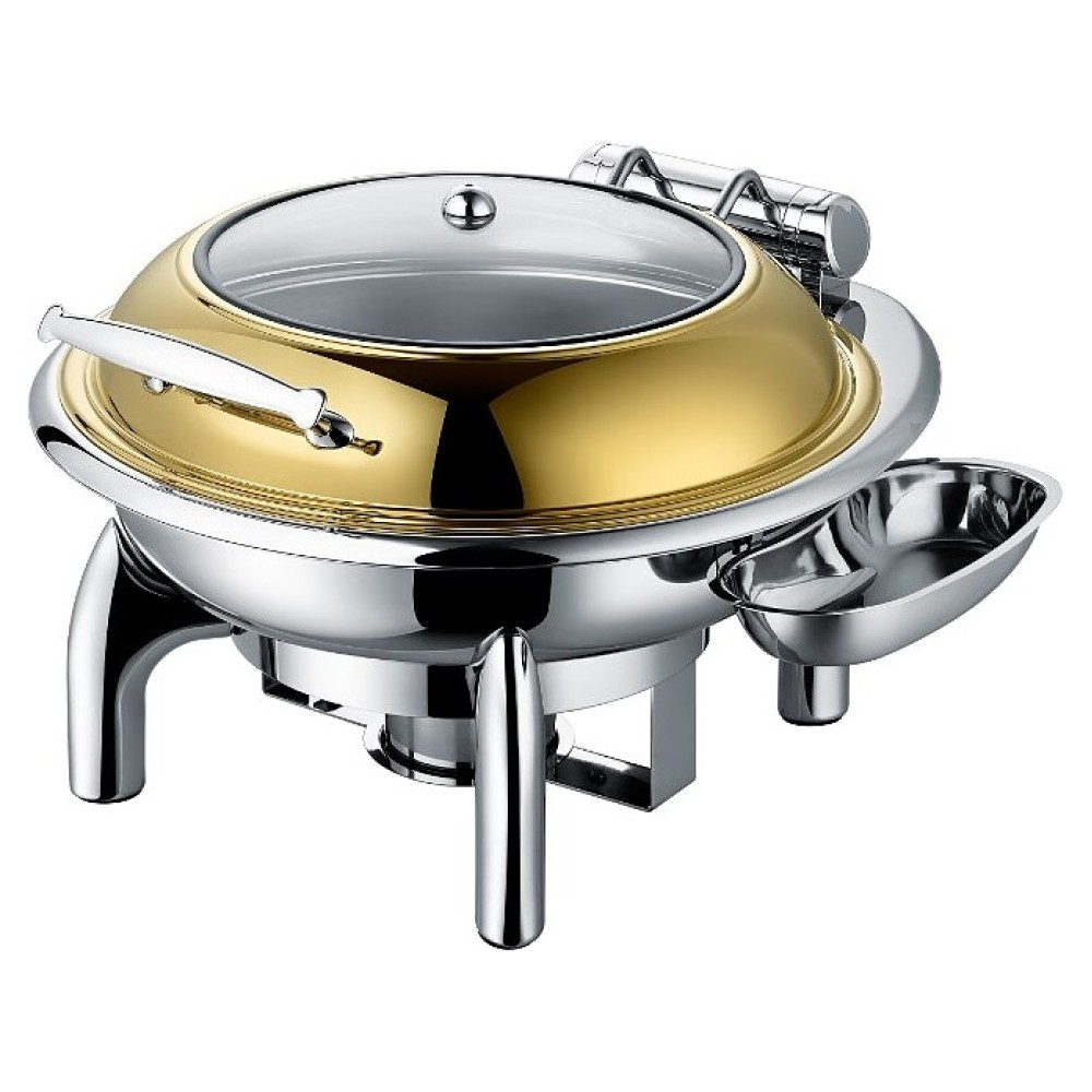 Чафинг-диш Crazy Pan CP-CHD018T предназначен для постоянного подогрева первых и вторых блюд и поддержания их оптимальной температуры на предприятиях общественного питания и торговли. Модель оснащена откидной крышкой с ручкой. Корпус выполнен из высококачественной нержавеющей стали марки 201 с глянцевой серебристой поверхностью, крышка с глянцевым покрытием оттенка титан.