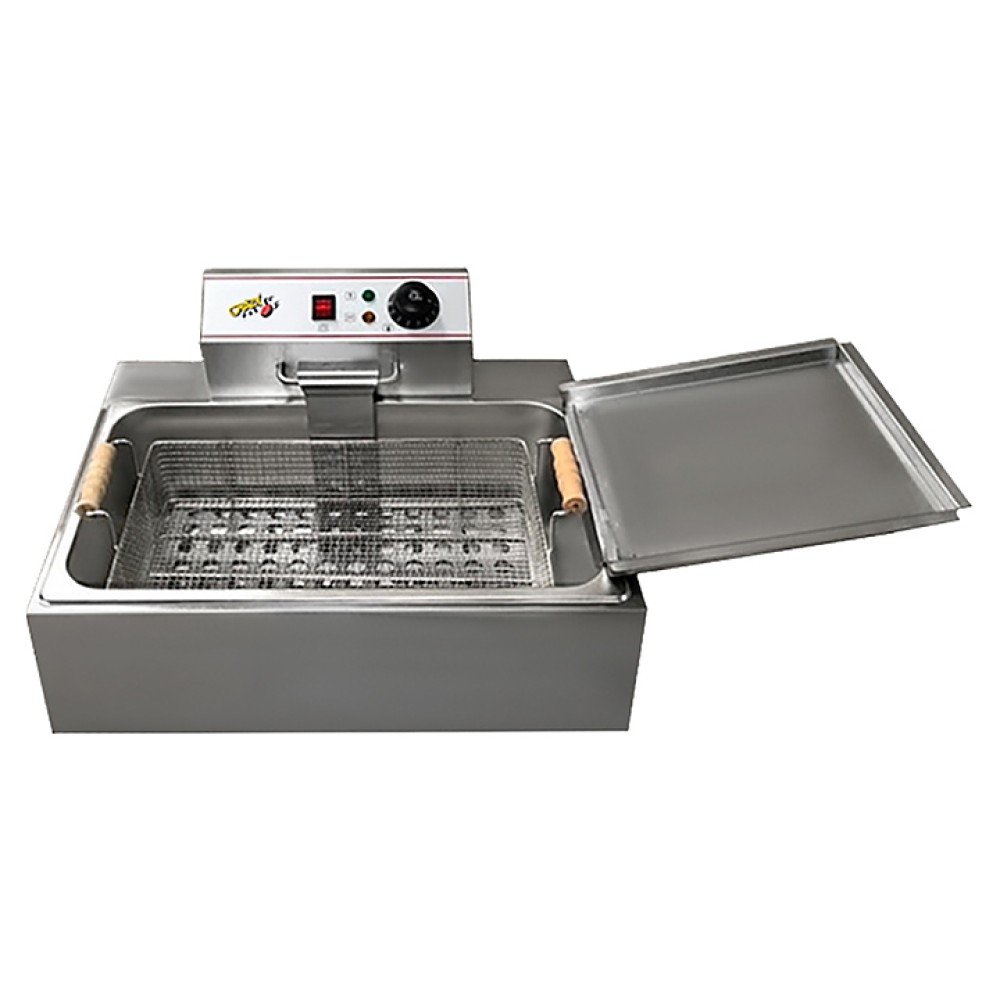 Чебуречница Crazy Pan CP-BEF08 предназначена для приготовления чебуреков и других блюд на предприятиях общественного питания и торговли. Модель оснащена терморегулятором, боковым поддоном, объемной съемной корзиной и шипцами. Корпус выполнен из нержавеющей стали.
