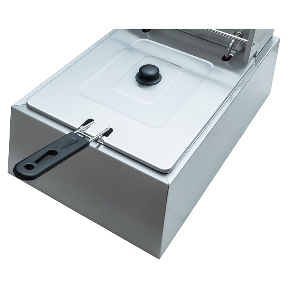 Фритюрница Crazy Pan CP-EF06L предназначена для приготовления различных продуктов в большом количестве масла на предприятиях общественного питания и торговли. Модель оснащена терморегулятором и съемной корзиной с ручками. Корпус выполнен из нержавеющей стали.
