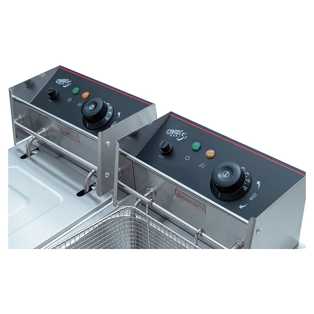 Фритюрница Crazy Pan CP-EF66L предназначена для приготовления различных продуктов в большом количестве масла на предприятиях общественного питания и торговли. Модель оснащена 2 блоками нагрева, 2 терморегуляторами и 2 съемными корзинами с ручками. Корпус выполнен из нержавеющей стали.