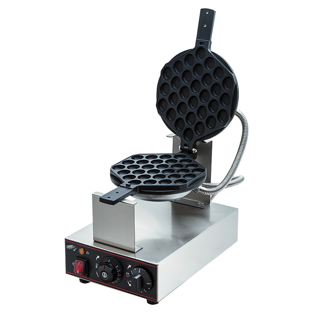 Вафельница Crazy Pan CP-WFM06HK используется на предприятиях общественного питания и торговли для выпекания гонконгских вафель в форме шестиугольников с шариками. Модель оснащена терморегулятором, 2 ТЭНами, звуковым таймером на 5 минут и переключателем питания со специальной защитой от влаги. Корпус выполнен из нержавеющей стали, рабочая поверхность - из чугуна с антипригарным покрытием.