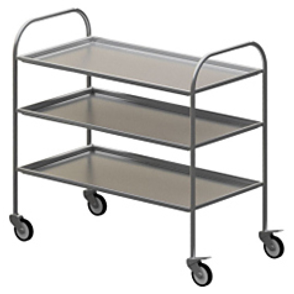 Сервировочная тележка Сryspi ТС Э серии Эконом предназначена для транспортировки готовых блюд, лекарств, приборов и тарелок на предприятиях пищевой промышленности, общественного питания и торговли, в гостинницах, отелях и больницах. Тележка изготовлена из шлифованной нержавеющей стали, каркас выполнен с применением хромированной трубы. Весь металл глянцевый в едином стиле.