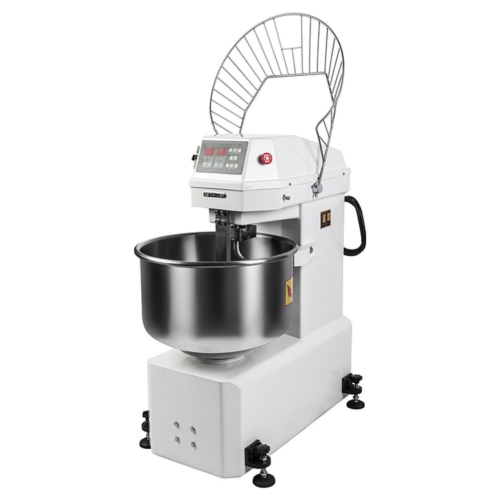 Спиральный тестомес Danler PQ-80 используется на предприятиях общественного питания и торговли, а также в производственных цехах, деятельность которых связана с выпуском гастрономической продукции, для автоматизации процесса замешивания и вымешивания дрожжевого теста, творожной массы, картофельного пюре и других подобных вязких масс. Модель оснащена электронной панелью управления, отсекателем и роликами, центрирующими дежу. Корпус выполнен из углеродистой стали и покрыт молотковой эмалью, дежа и месильный орган - из пищевой нержавеющей стали AISI 304.