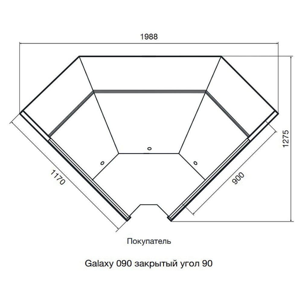 Холодильная витрина Dazzl Galaxy 090 Закрытый угол 90 предназначена для демонстрации, охлаждения и кратковременного хранения мяса, птицы, рыбы, колбасных, молочных и гастрономических изделий на предприятиях общественного питания и торговли. Модель оснащена электронным контроллером управления. Рабочая поверхность и базовые поддоны выполнены из нержавеющей стали.