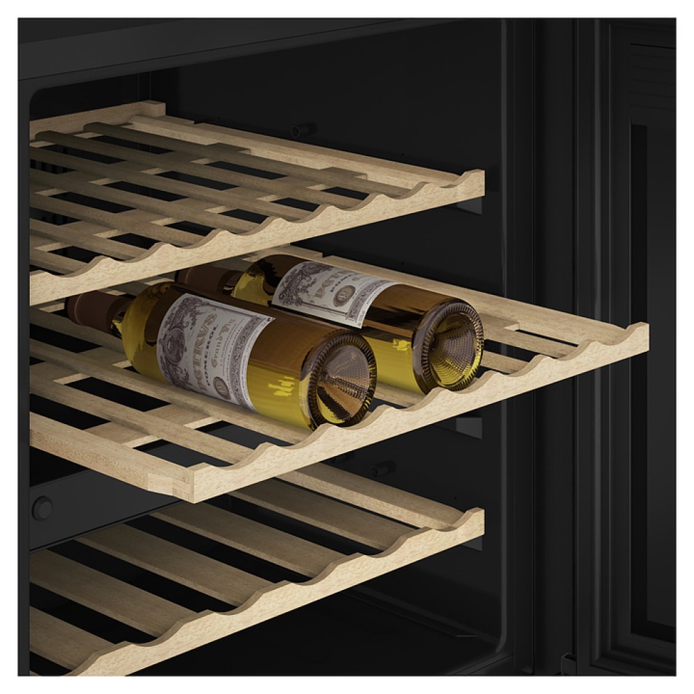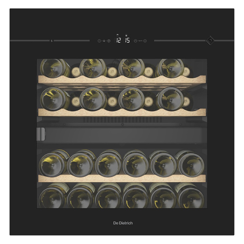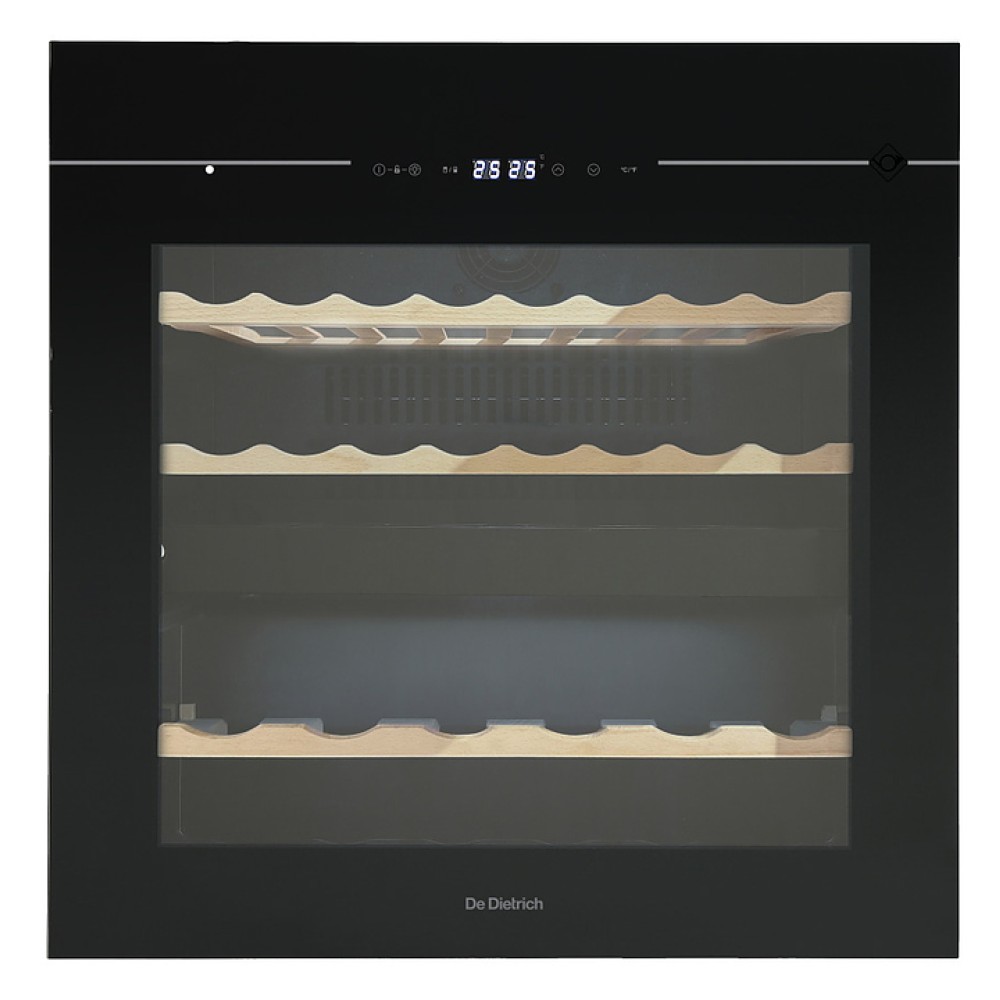 Винный шкаф De Dietrich DIW36DFB из коллекции Philharmonie предназначен для демонстрации, охлаждения и хранения винных напитков на предприятиях торговли, общественного питания, в коттеджах и частных домах. Модель оснащена цифровым дисплеем, сенсорным управлением, светодиодным освещением и 4 съемными полками. Полки выполнены из дерева, дверь - из стекла с УФ-фильтром.