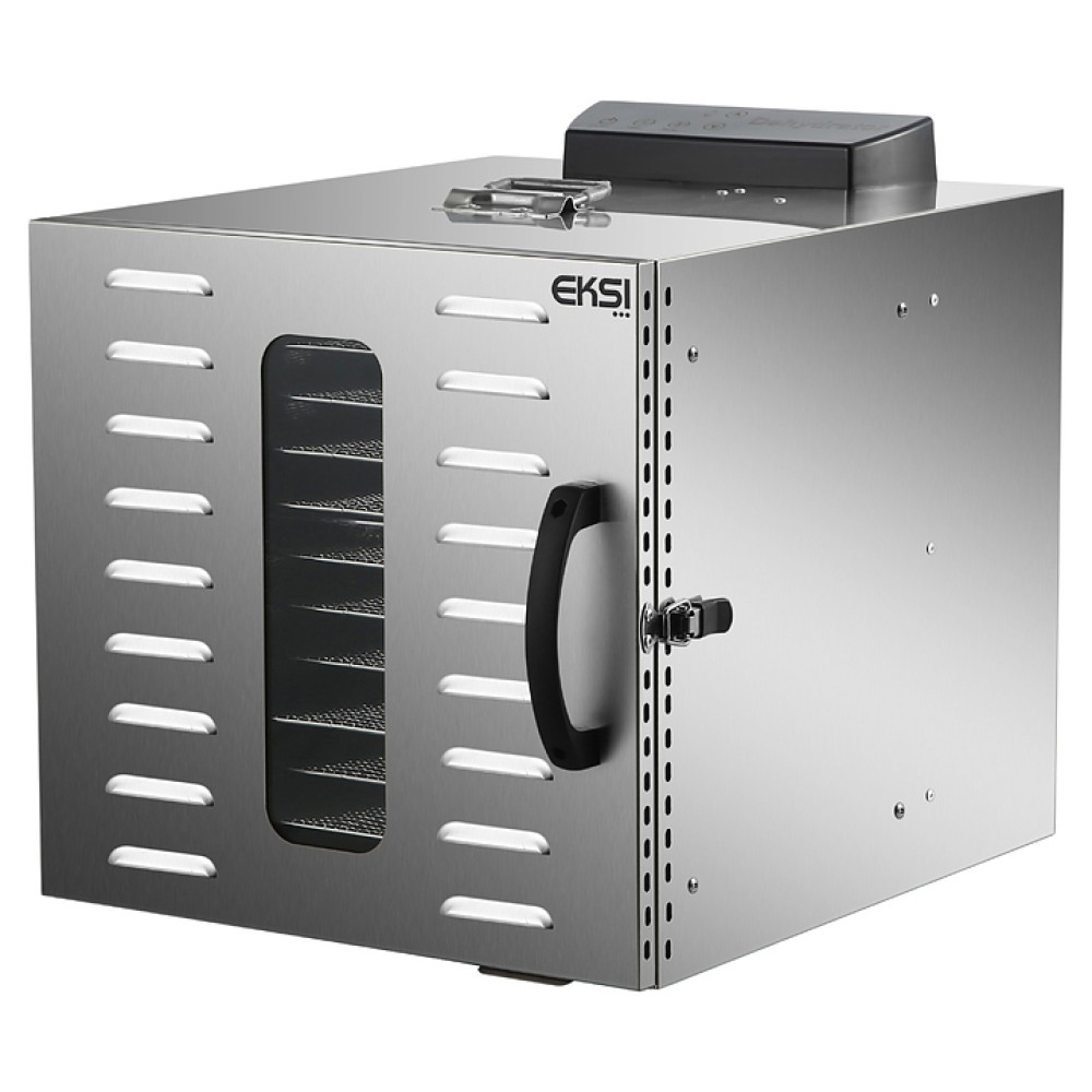 Дегидратор EKSI HFD-12 редназначен для сушки фруктов, овощей и грибов на предприятиях общественного питания и торговли. Модель оснащена электромеханической панелью управления. Корпус выполнен из нержавеющей стали.