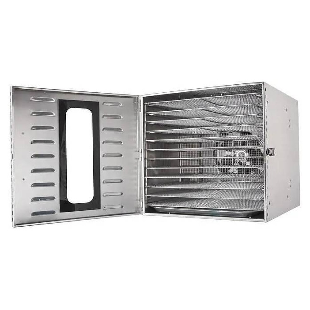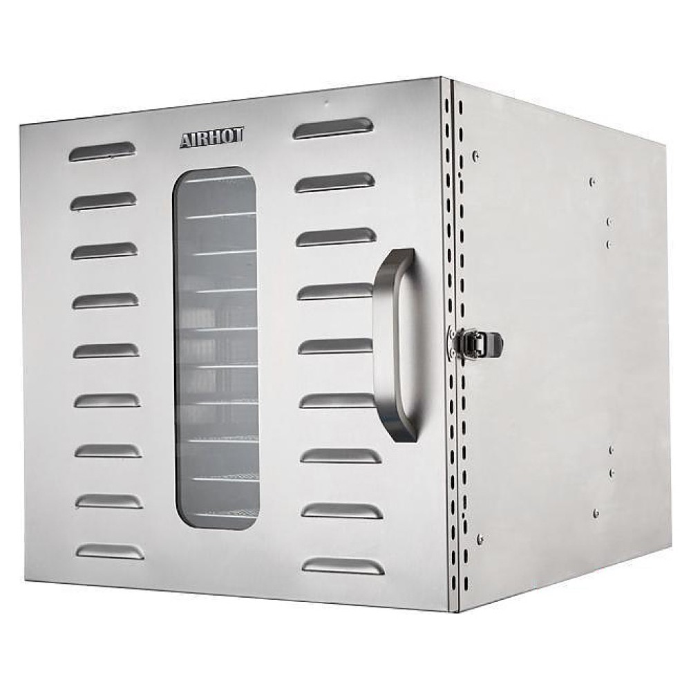 Дегидратор Airhot FD-12 используется на предприятиях общественного питания и торговли, в производственных цехах, а также в домашних условиях для сушки овощей, грибов, фруктов и ягод. Модель оснащена электронной панелью управления и вентилятором на задней части аппарата. Корпус выполнен из нержавеющей стали.