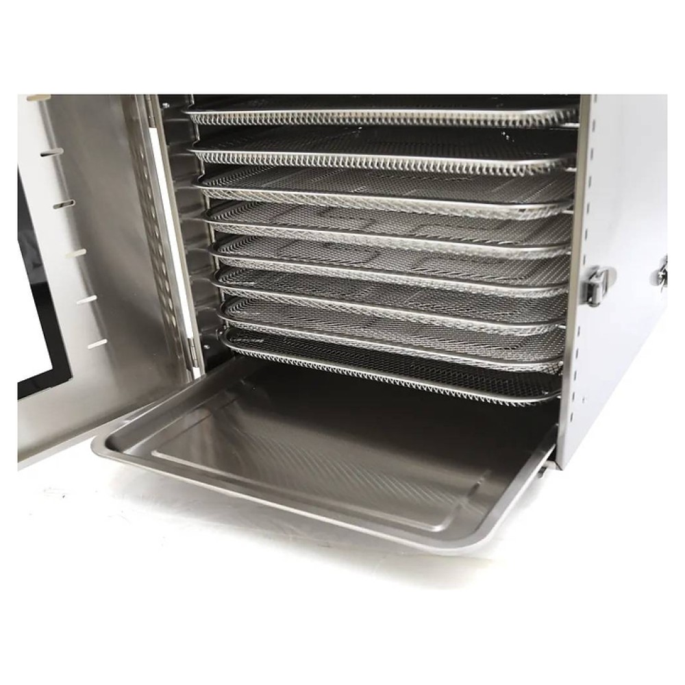 Дегидратор Airhot FD-16G используется на предприятиях общественного питания и торговли, в производственных цехах, а также в домашних условиях для сушки овощей, грибов, фруктов и ягод. Модель оснащена электромеханической панелью управления. Корпус выполнен из нержавеющей стали.