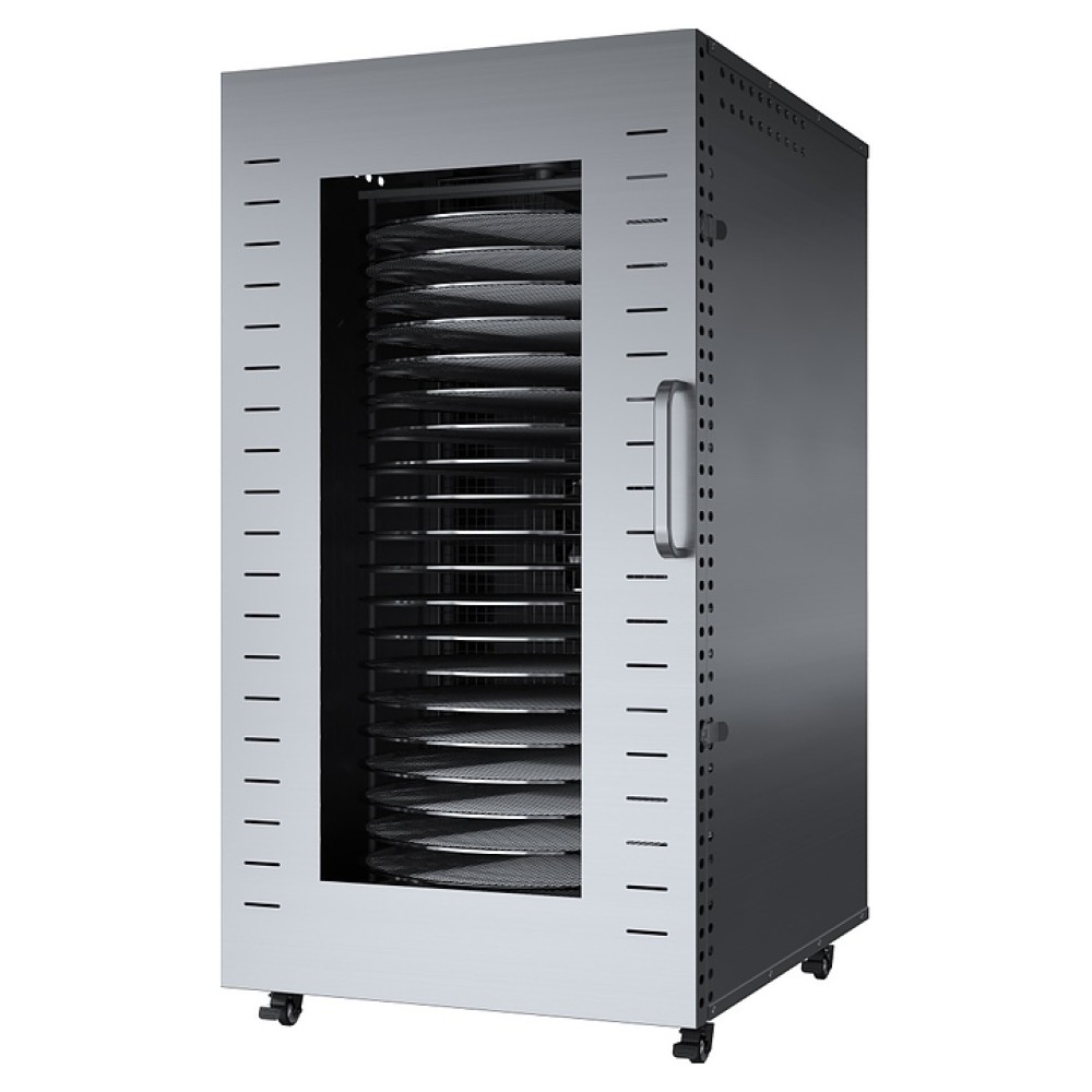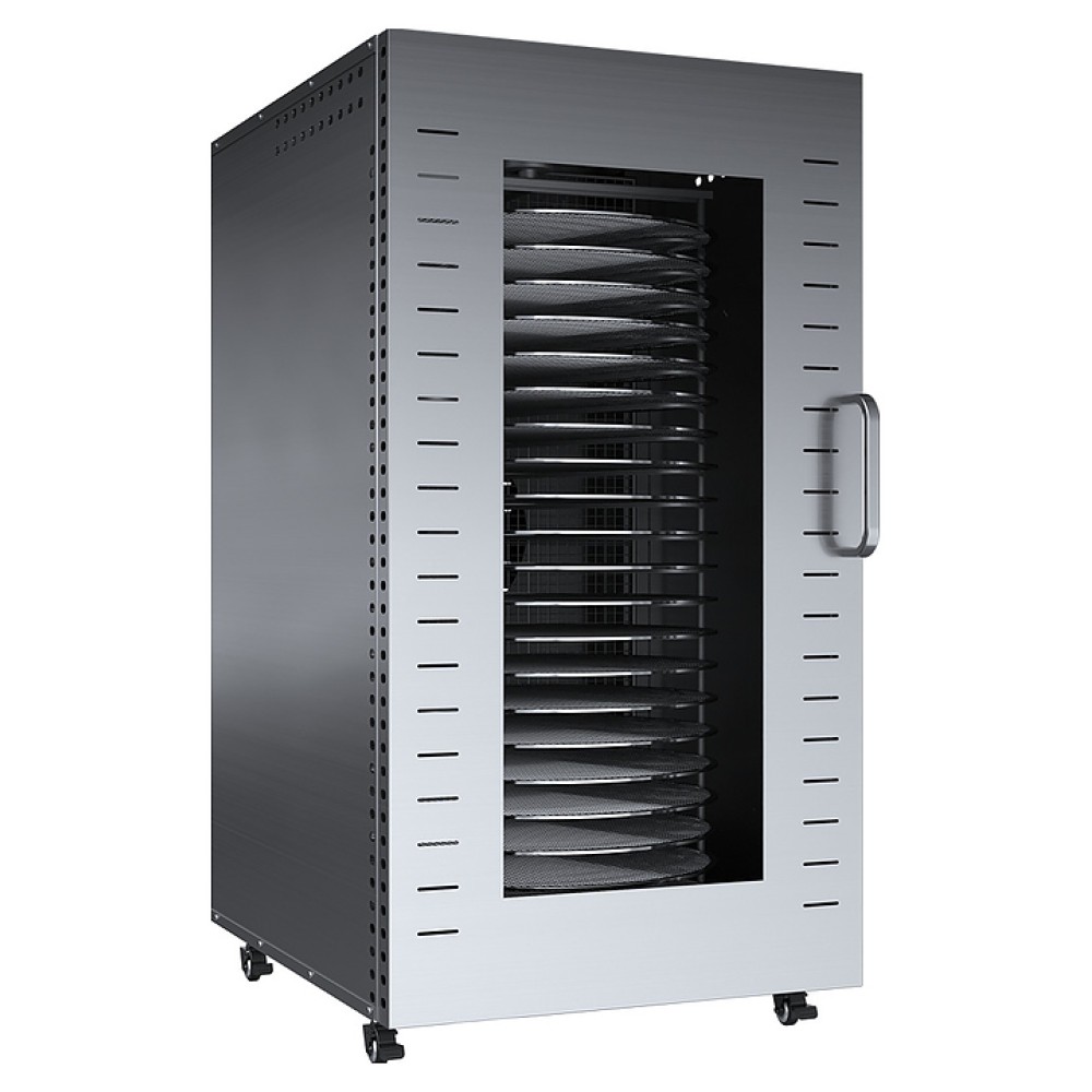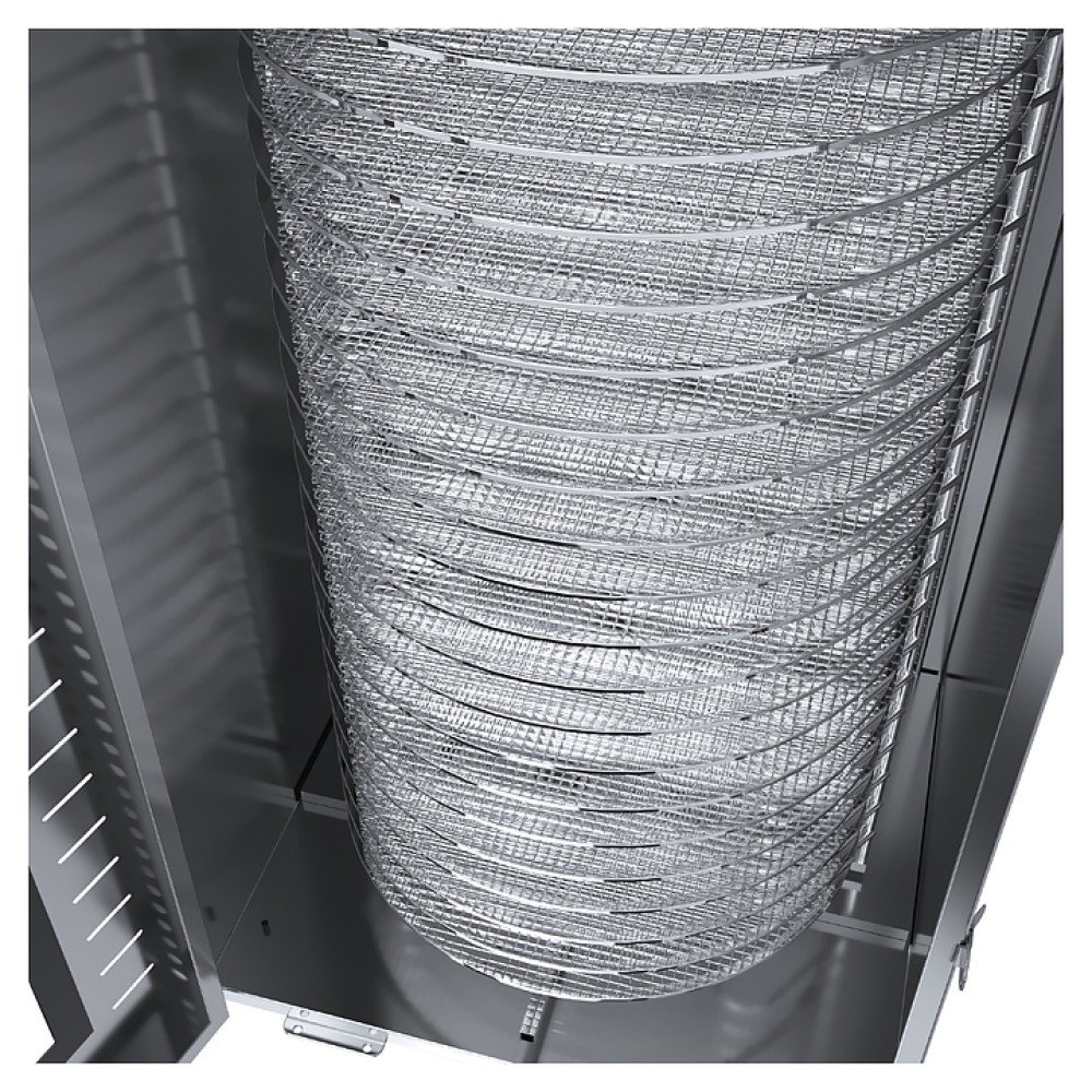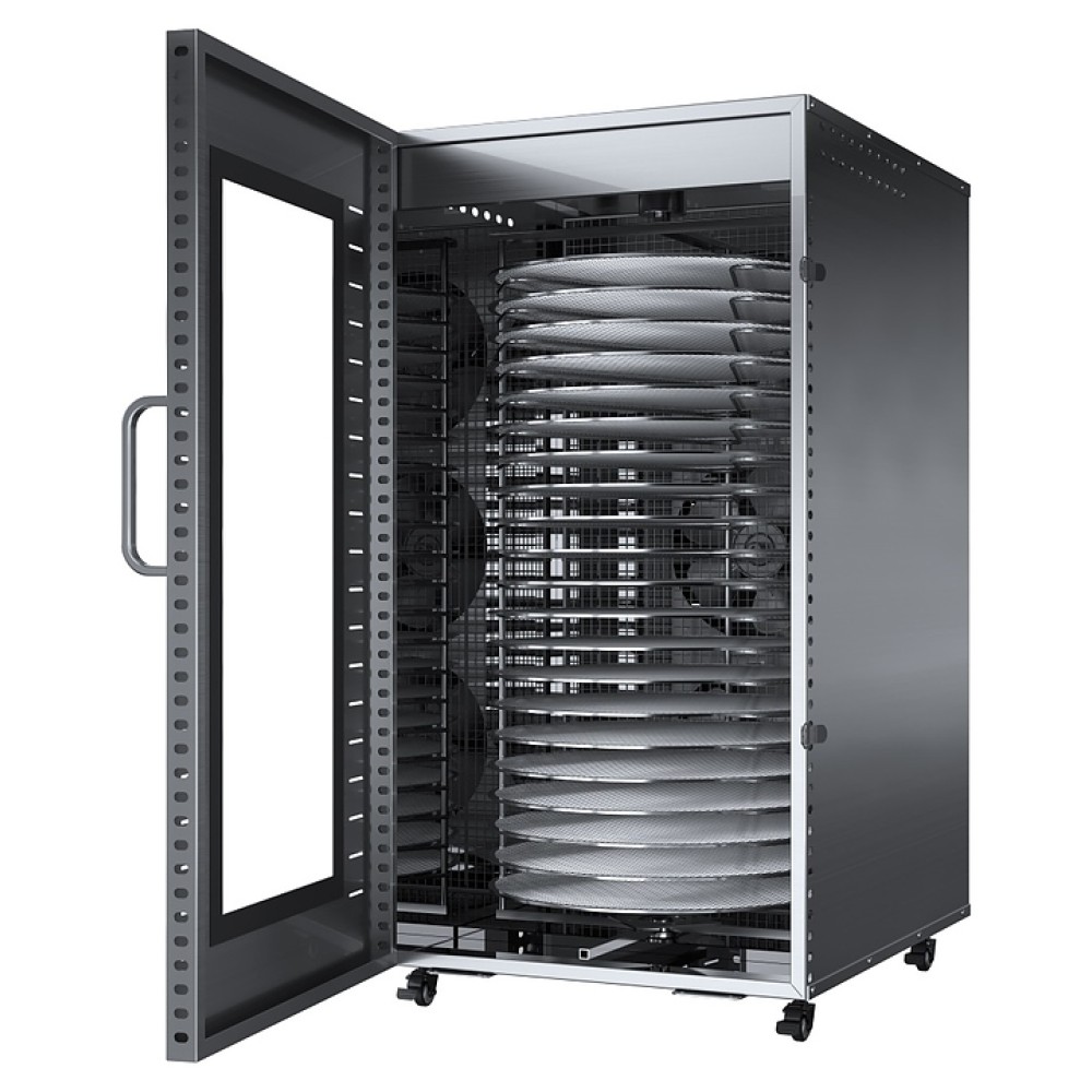 Дегидратор Libhof FDT-22 используется на предприятиях пищевой промышленности, общественного питания и торговли, а также в домашних условиях для сушки овощей, фруктов, ягод, грибов и трав, вяления рыбы, расстойки теста, приготовления сухариков, пастилы и йогурта. Модель оснащена камерой с 22 уровнями направляющих для размещения поддонов, расположенными в задней стенке вентилятором и нагревательными элементами, распашной дверью с вертикальной рукояткой, кабелем питания, расположенным на верхней панели блоком управления с сенсорной клавиатурой и цифровым дисплеем. Корпус и поддоны выполнены из высококачественной нержавеющей стали.