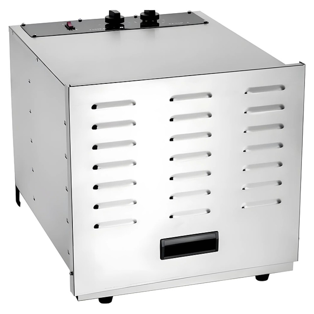 Дегидратор VIATTO VA-DG10SS предназначен для равномерной сушки овощей, грибов, фруктов, ягод, трав, орехов посредством конвекции, а также для приготовления пастилы, овощных, фруктовых чипсов, хлебцев, сушеного мяса, рыбы и других продуктов на предприятиях общественного питания и торговли. Модель оснащена дверцей с термовыводящими отверстиями и механической панелью управления. Корпус выполнен из нержавеющей стали, решетки – из железа с никелированным покрытием.