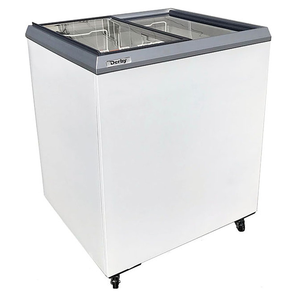 Морозильный ларь Derby EK-26 предназначен для демонстрации, заморозки и длительного хранения продуктов и полуфабрикатов на предприятиях общественного питания и торговли. Модель оснащена регулируемым термостатом и аналоговым контролем температуры. Корпус выполнен из окрашенной стали, внутренняя прокладка и испаритель - из алюминия, рама - из пластика.