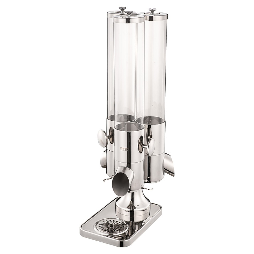 Диспенсер F&B Project C12-5X3 предназначен для порционной раздачи сыпучих продуктов, таких как мюсли или кукурузные хлопья на предприятиях общественного питания и в домашних условиях. Модель оснащена прозрачными емкостями, ручками для удобства дозирования и крышками. Корпус выполнен из нержавеющей стали и акрила.