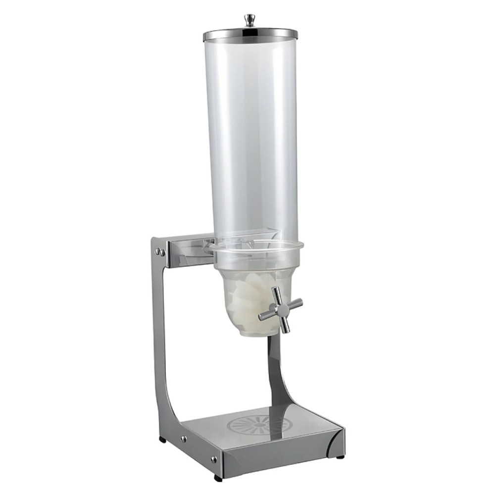 Диспенсер Hurakan HKN-GPD351 используется на предприятиях общественного питания и торговли для порционной раздачи сыпучих продуктов, таких как мюсли или кукурузные хлопья. Модель оснащена 1 емкостью. Корпус выполнен из нержавеющей стали, емкость - из поликарбоната.