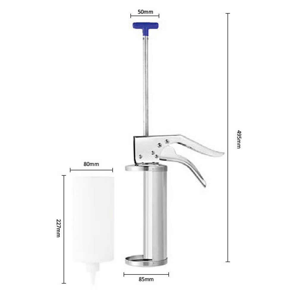 Дозатор-шприц Kocateq SV1/3NMCC используется на предприятиях общественного питания и торговли, в частных домах и квартирах для наполнения изделий соусом, таким как майонез, сметана и гуакамоле. Корпус выполнен из нержавеющей стали Aisi 201, ручка - из пластика.