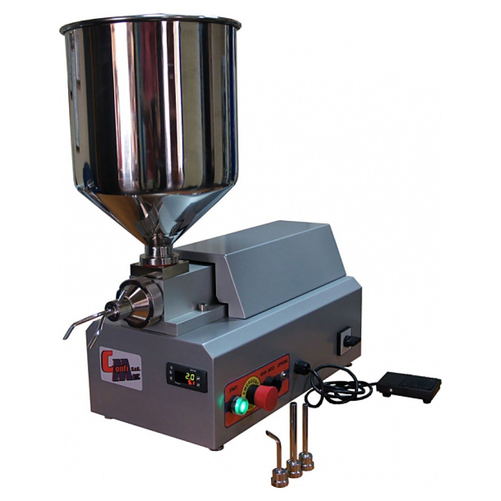 Поршневой шприц-дозатор Confimec RP-15S предназначен для наполнения начинкой пончиков, эклеров, трубочек "канноли", бриошей (круассанов) и пр. в пекарнях и кондитерских, на предприятиях пищевой промышленности и общественного питания. Модель оснащена регулируемой дозировкой начинки вручную и защитными приспособлениями согласно требованиям техники безопасности.