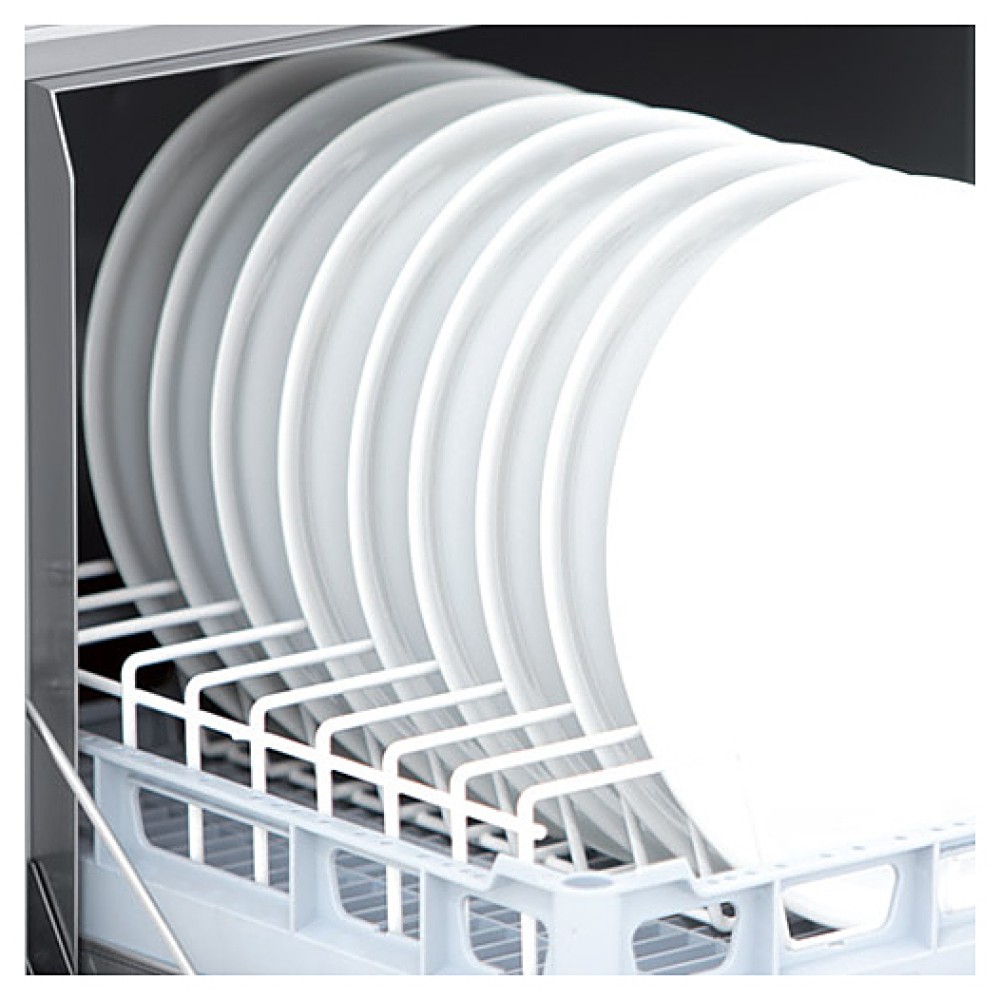 Посудомоечная машина с фронтальной загрузкой Elettrobar FAST 60 используется на предприятиях общественного питания для мытья стаканов, посуды и кухонной утвари. Модель оснащена электромеханической панеью управления со световыми индикаторами и перистальтическим дозатором ополаскивающего средства.